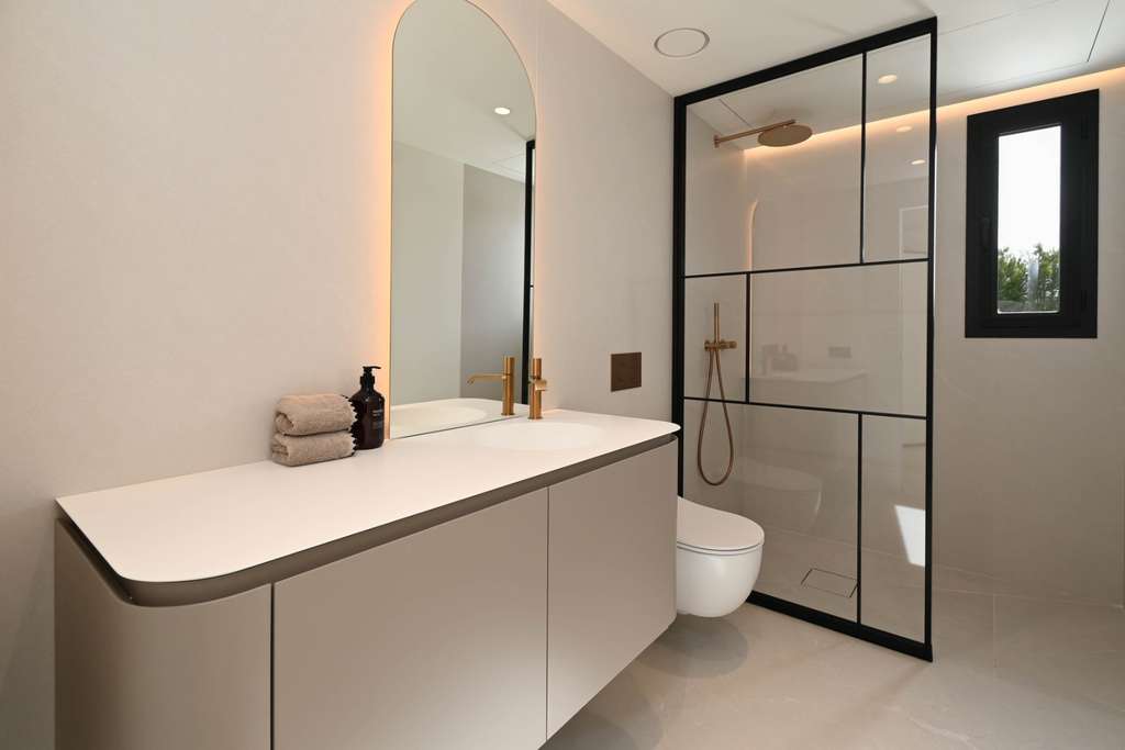 El interior ofrece aproximadamente 330 m² de superficie habitable, con cuatro amplios dormitorios y cinco baños, cuatro de ellos en suite, además de un aseo de cortesía. La cocina Boffi hecha a medida, equipada con electrodomésticos Gaggenau, se erige como el corazón elegante y funcional de la vivienda, reflejando el diseño italiano y la sofisticación moderna.