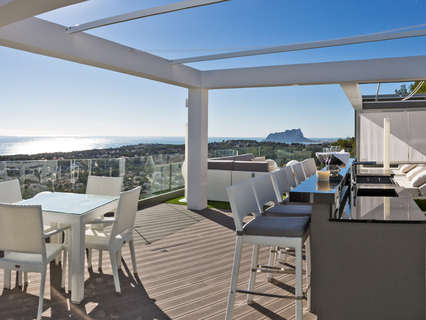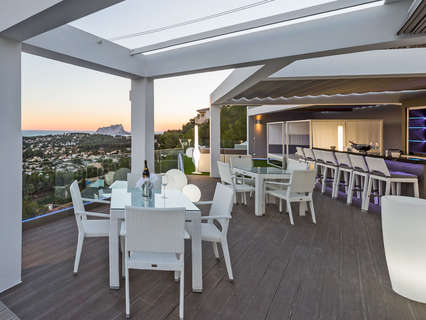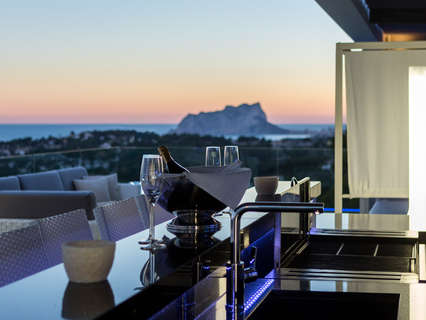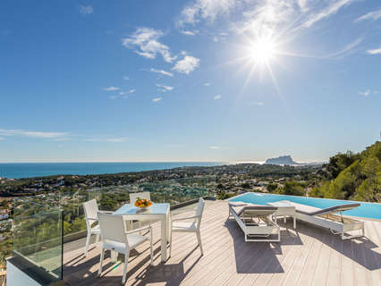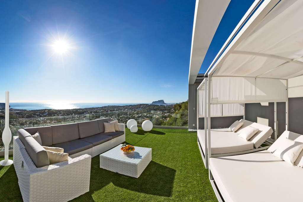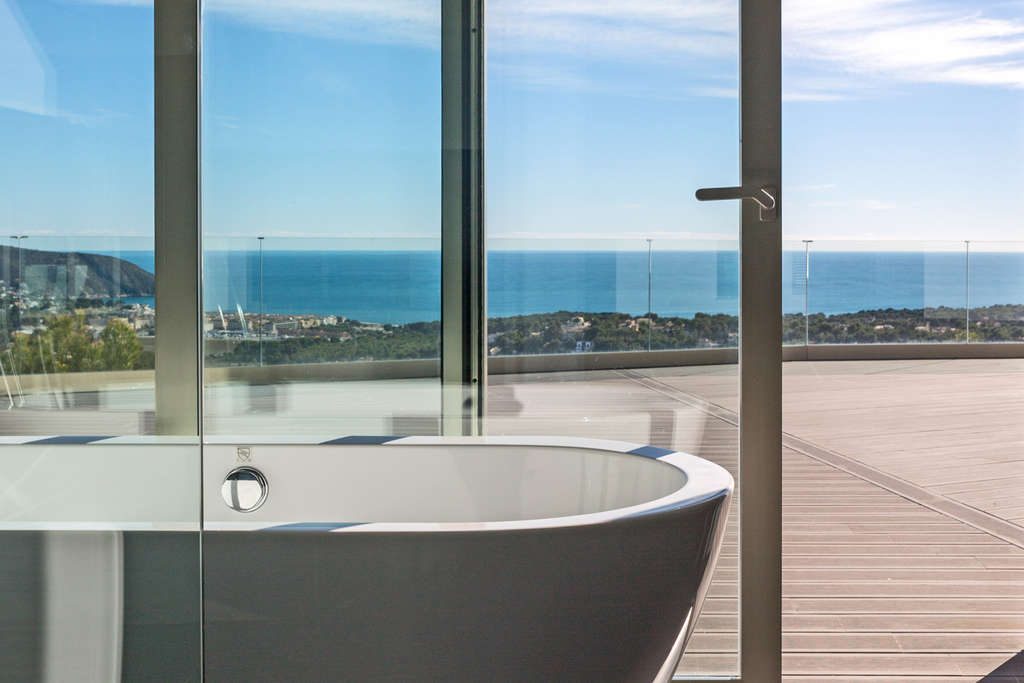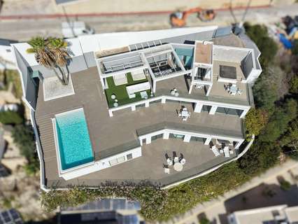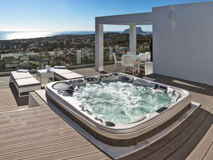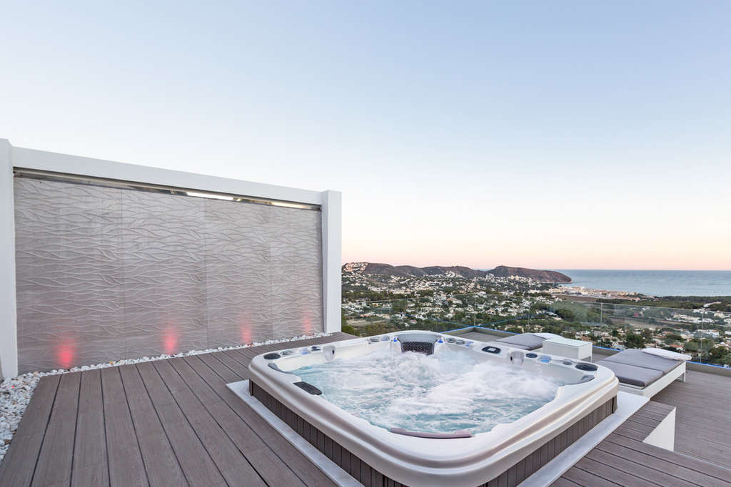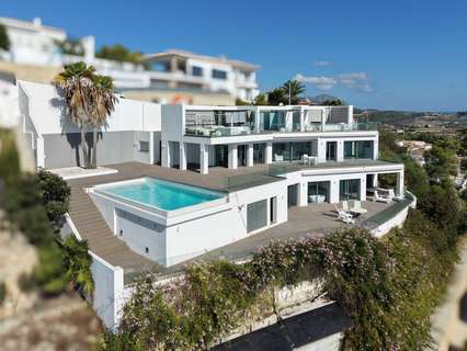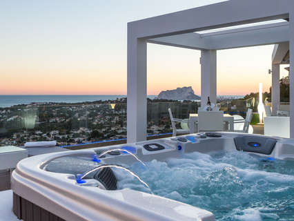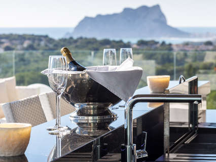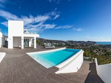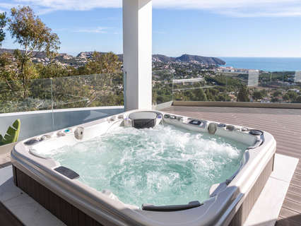 Esta exclusiva villa de estilo moderno se erige sobre una parcela de más de 900 m², orientada al sur para disfrutar del sol durante todo el día y de unas impresionantes vistas abiertas al mar Mediterráneo. Con más de 400 m² de superficie habitable y 480 m² de terrazas, la propiedad combina a la perfección el diseño contemporáneo, el confort y la elegancia.La planta principal acoge un amplio y luminoso salón comedor con chimenea, que se fusiona de forma natural con una cocina profesional abierta e integrada, concebida tanto para el uso diario como para disfrutar de momentos sociales. Desde esta planta se accede directamente a la espectacular terraza principal, donde la piscina infinita de dos lados se funde visualmente con el horizonte marino. En este mismo nivel se encuentra un dormitorio en suite con vestidor, que goza también de acceso directo a la terraza y a las vistas al mar, ofreciendo un entorno íntimo y sereno.En la planta inferior, la villa dispone de tres elegantes dormitorios en suite, todos con salida a una amplia terraza.Este nivel alberga además una espaciosa habitación diáfana, ideal como gimnasio, estudio o sala de ocio, y una exclusiva zona de spa con sauna acristalada y acceso a una terraza con jacuzzi exterior, creando un espacio perfecto para la relajación y el bienestar.La azotea se presenta como un auténtico refugio de placer y descanso. Allí, los propietarios podrán disfrutar de un área de hidromasaje, una cascada decorativa, tumbonas, y un elegante mobiliario chill-out, todo ello acompañado por una cocina profesional al aire libre con barra y mostrador, un aseo de invitados y una amplia zona de sombra que invita a disfrutar del entorno con total confort y privacidad.La vivienda está equipada con calefacción por suelo radiante mediante energía solar y bomba de calor, aire acondicionado en todas las estancias, equipamiento interior de diseño a medida, sistema de vigilancia y alarma, portón eléctrico, cochera y un cerramiento perimetral completo con muros, garantizando la máxima seguridad y privacidad.Situada en Moraira, uno de los enclaves más exclusivos de la Costa Blanca, esta villa se encuentra a pocos minutos del centro y de sus encantadoras calas de aguas cristalinas. Moraira combina el encanto de un antiguo pueblo pesquero con una oferta gastronómica de primer nivel, puerto deportivo, boutiques y una calidad de vida inigualable. Un lugar privilegiado donde el mar, el lujo y la tranquilidad conviven en perfecta armonía.