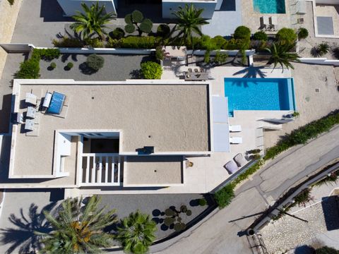 Villa en Moraira, construida en 2021, orientada al sur con vistas panorámicas al mar. Ubicada a 1.2 km de la playa y a 1.4 km del centro del pueblo, a poca distancia caminando. Solar privado con jardín, piscina infinity de aproximadamente 40 m², terrazas (algunas cubiertas) y cocina exterior.