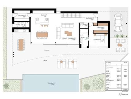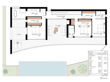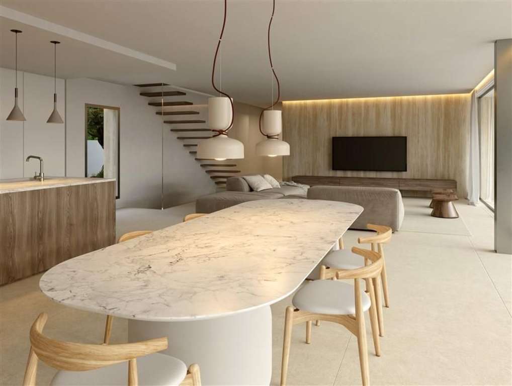 Villa de un diseño exquisito, así como acabados interiores de alta calidad, vistas al mar desde ambas plantas, así como vistas abiertas al bosque de pinos. La propiedad dispone de salón/comedor con cocina abierta equipada con isla, lavadero, 4 dormitorios con vestidor y baño en suite, aseo de invitados, baño exterior, zona chill-out en la planta alta con inmejorables vistas al mar, una amplia zona en sótano (en parte dicha terminación no está incluida), cocina de verano, garaje doble y aparcamiento cubierto. La superficie construida cubierta es de 680 m2 más 222 m2 de terrazas. Piscina infinity de 11 metros. La villa estará equipada con una cocina moderna con todos los electrodomésticos, sistema de climatización por Aerotermia (suelo radiante y aire acondicionado por conductos),muebles de baño, griferías empotradas en pared, iluminación técnica LED, suelos porcelánicos en gran formato, jardín completo con sistema de riego automático, etc. Situado en la exclusiva zona de Moravit en una zona tranquila, en calle sin salida, playa y comercios, restaurantes y servicios, todo a menos de 1 km.