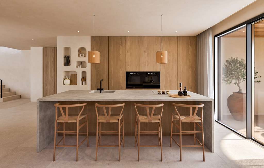 Estas viviendas únicas combinan la arquitectura contemporánea con la calidez mediterránea: amplias terrazas, piscinas privadas, detalles en piedra, pérgolas de madera, arcos en las nayas y exuberantes jardines crean una atmósfera de refinada serenidad. En el interior, los espacios abiertos y luminosos se integran de forma natural con el exterior, donde la brisa marina y las puestas de sol se convierten en parte del día a día.