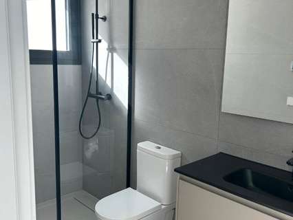 - Baños: los inodoros serán color blanco, modelo MERIDIAN COMPAC o similar. Platos de ducha extraplanos de resinas blancas de alta resistencia y mamparas de vidrio templado con tratamiento antical. Los lavabos estarán sobre mueble de baño suspendido con cajones extraibles. Se instalará espejo con iluminación led integrada y lámina antivaho. Griferias monomando. Se instalará un radiador toallero y toalleros y portarollos.