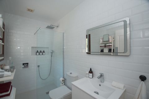 La villa ofrece un total de tres dormitorios dobles. El dormitorio principal incluye un baño en suite con ducha, mientras que los otros dos comparten un baño familiar ubicado al final del pasillo. Uno de los dormitorios traseros también proporciona acceso directo a la terraza de la piscina a través de puertas dobles. Un lavadero separado añade comodidad con espacio de almacenamiento y para electrodomésticos dedicado.
