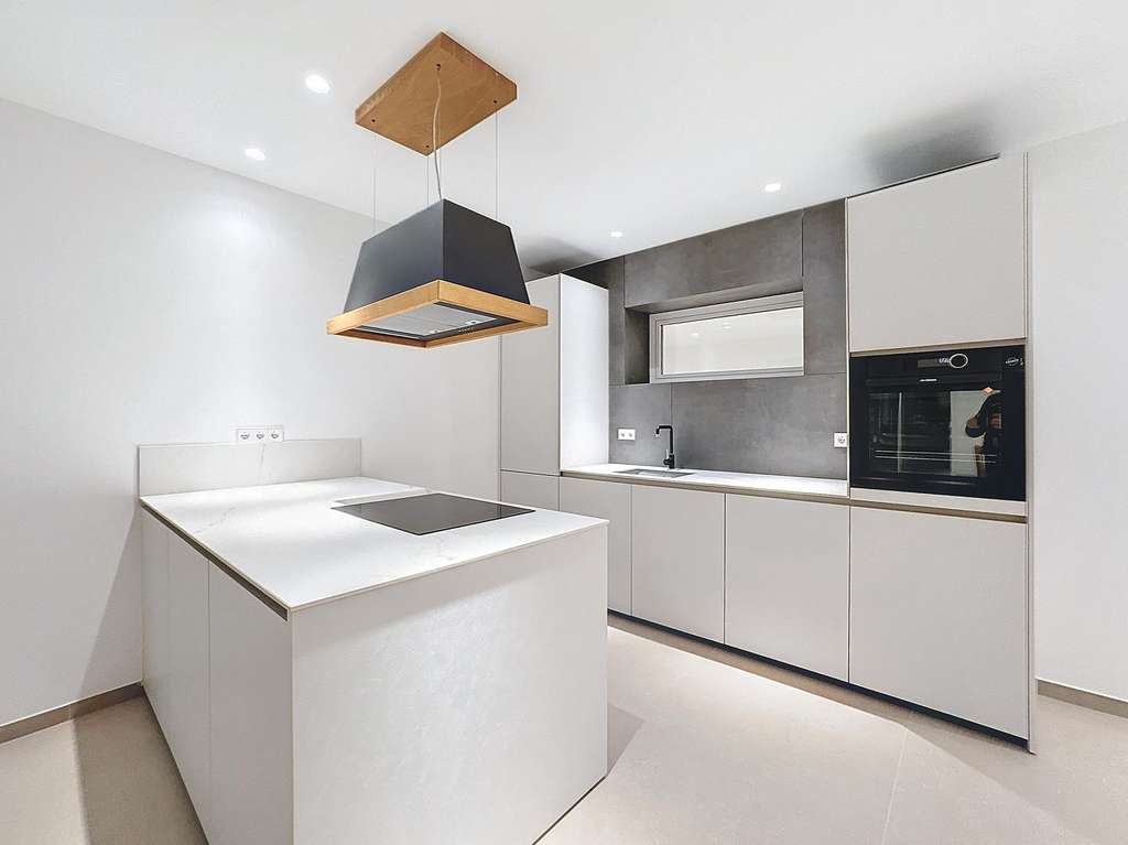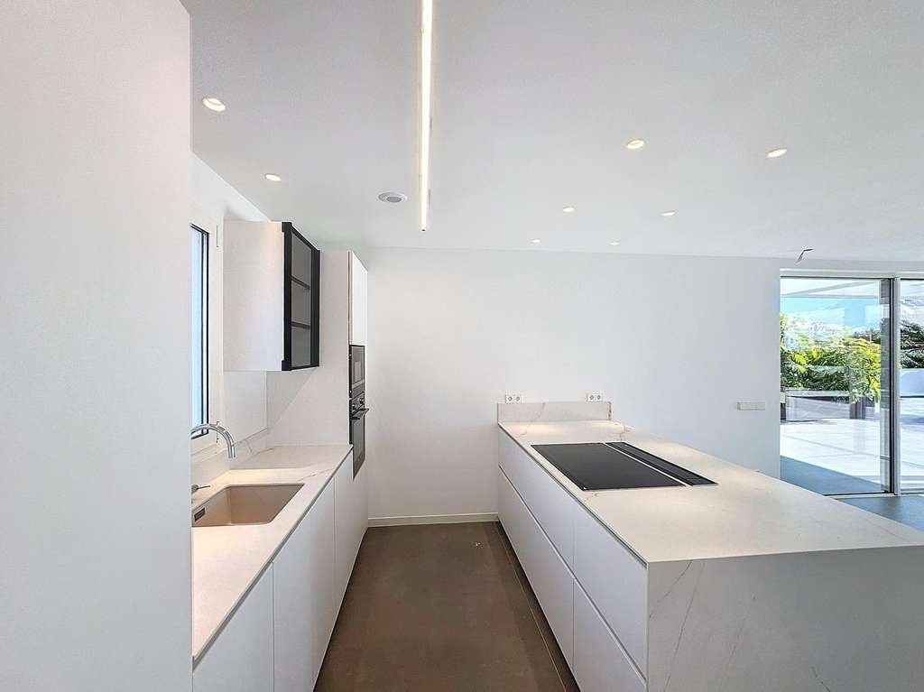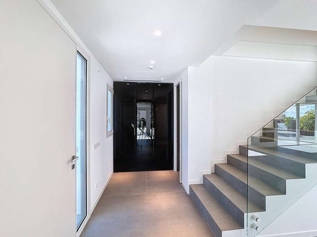 En la planta baja, la vivienda ofrece un amplio y luminoso salón-comedor de concepto abierto, donde los grandes ventanales de suelo a techo inundan el espacio de luz natural y se abren directamente a la terraza y la piscina privada. La moderna cocina de diseño, totalmente equipada con electrodomésticos de primera línea, cuenta además con un lavadero independiente para mayor comodidad.