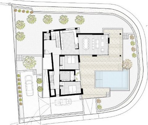 Entering the property, we find a spacious open concept living room that merges with a modern fully equipped kitchen. Large windows let in natural light and the interior with the terrace and private swimming pool. Still onn the same floor, there are two double bedrooms with fitted wardrobes and a family bathroom, as well as a guest toilet.The first floor is dedicated entirely to the master suite: a spacious bedroom with dressing room, en-suite bathroom and access to a private terrace from which you can enjoy unparalleled views of the coastline and the natural environment surrounding the property.The basement of the villa offers endless possibilities thanks to its spaciousness and natural light. This space can be adapted to the owner's needs, whether as a gymnasium, cinema room, wine cellar or entertainment area. In addition, the property has a double garage with direct access to the property.