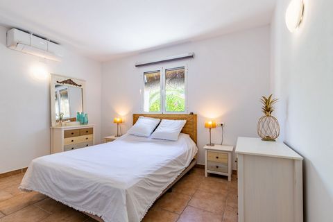Ubicada en la codiciada zona de Baladrar, esta encantadora villa de estilo mediterráneo con toques rústicos ofrece una vida tranquila y soleada a solo unos pasos de una cala con bandera azul. Distribuida en una sola planta y sobre una amplia parcela de 918 m², la propiedad brinda privacidad y confort en un entorno natural privilegiado. La vivienda cuenta con 167 m² construidos, 3 dormitorios dobles, 2 baños completos, un acogedor salón con chimenea y una cocina equipada de diseño cálido y funcional. Las vigas de madera vistas y los detalles en piedra aportan carácter y autenticidad al espacio interior. El exterior es un verdadero oasis: piscina privada rodeada de vegetación madura, zonas ajardinadas muy cuidadas, terrazas para disfrutar al aire libre y zona de aparcamiento. El sistema de placas solares, el aire acondicionado y la orientación sur aseguran eficiencia y confort todo el año. Perfecta tanto como residencia habitual como casa de vacaciones. Ideal para familias o personas con movilidad reducida gracias a su distribución en una sola planta. A pocos minutos de servicios, restaurantes y playas paradisíacas de la Costa Blanca. Una oportunidad única para vivir cerca del mar, con el encanto de lo tradicional y el confort de lo moderno.