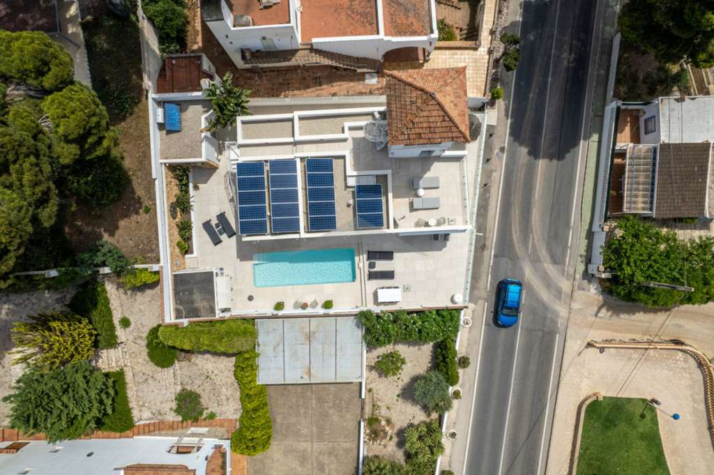 La villa ha sido diseñada con grandes ventanas de vidrio, lo que te brinda una casa con mucha luz natural y te permite disfrutar de las hermosas vistas sobre el mar Mediterráneo. La villa en primera línea en venta en Moraira está lista para habitar y situada en una ubicación perfecta con una exposición al sur. La casa está diseñada para disfrutar del aire libre español, tiene una gran terraza, una espaciosa piscina desde la cual puedes disfrutar de vistas maravillosas, cuenta con un bar/cocina exterior y una habitación adicional con un baño y ducha y almacenamiento. Una gran ventaja es que tiene un garaje muy grande debajo de la casa donde se pueden aparcar hasta dos coches y hay un espacio de almacenamiento extra.