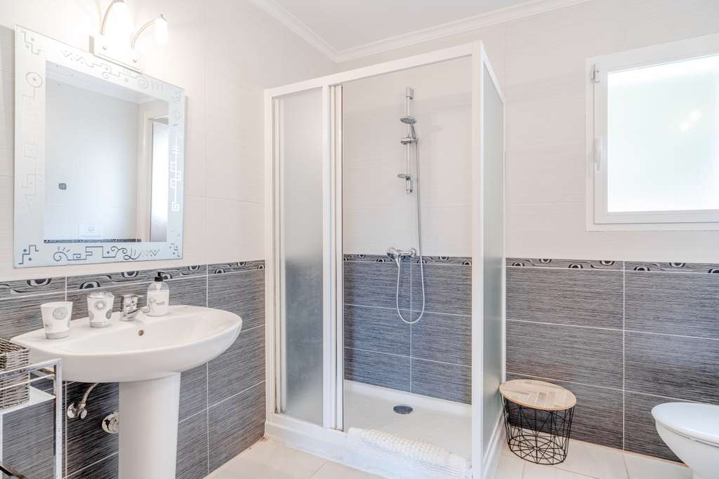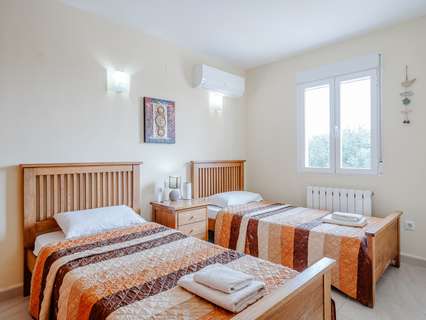 En el interior, la villa se distribuye en dos plantas y cuenta con seis dormitorios y cinco baños, tres de ellos en suite. La distribución es ideal para familias numerosas o para recibir invitados, con dos dormitorios en suite en la planta superior y uno en la planta baja. Las amplias áreas de estar están equipadas con calefacción central y aire acondicionado para garantizar confort durante todo el año.