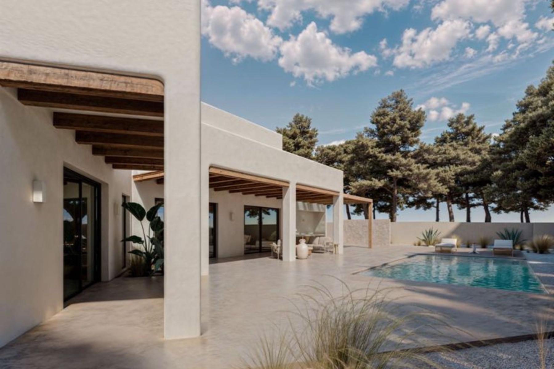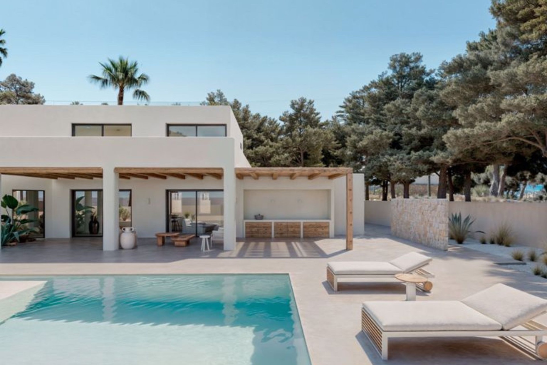Este proyecto único combina el estilo atemporal de Ibiza con el lujo y el confort modernos. Un lugar ideal para experimentar la vida mediterránea en todo su esplendor. Construida con materiales de primera calidad, la villa ofrece una elegante distribución distribuida en dos plantas: