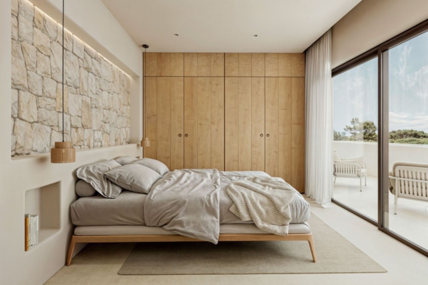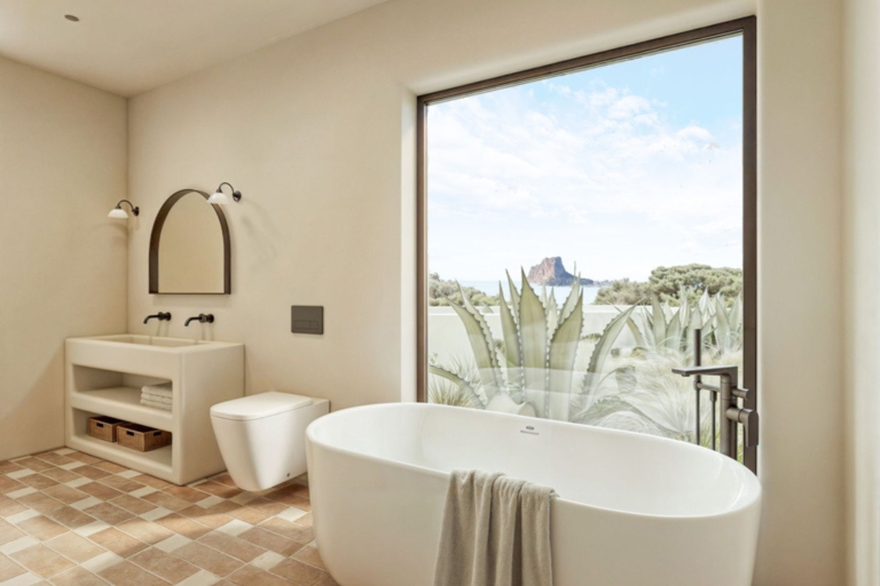 En la planta superior hay dos amplios dormitorios, cada uno con su propio cuarto de baño. Ambos dormitorios se abren a una amplia terraza donde se puede disfrutar de espectaculares vistas al mar.