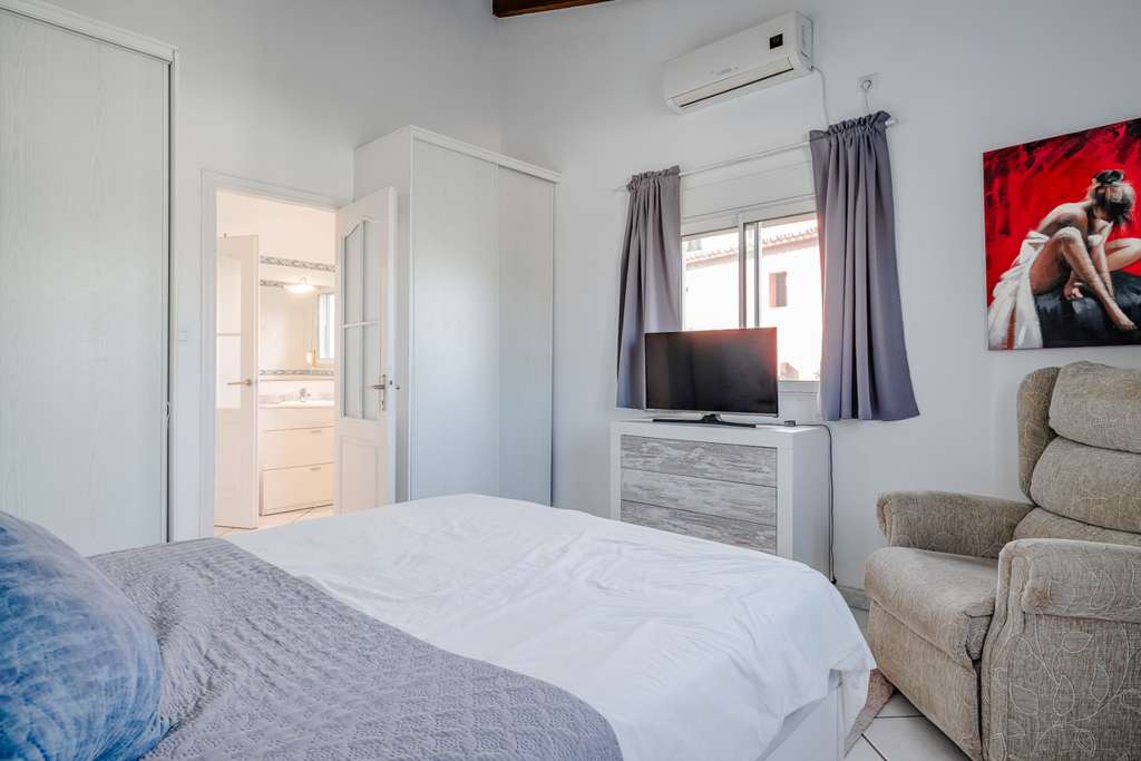 La villa cuenta con 4 amplios dormitorios y 3 baños (uno de ellos en suite), ideal para familias o invitados. El luminoso salón está equipado con aire acondicionado, calefacción central y una estufa de leña, garantizando confort durante todo el año.