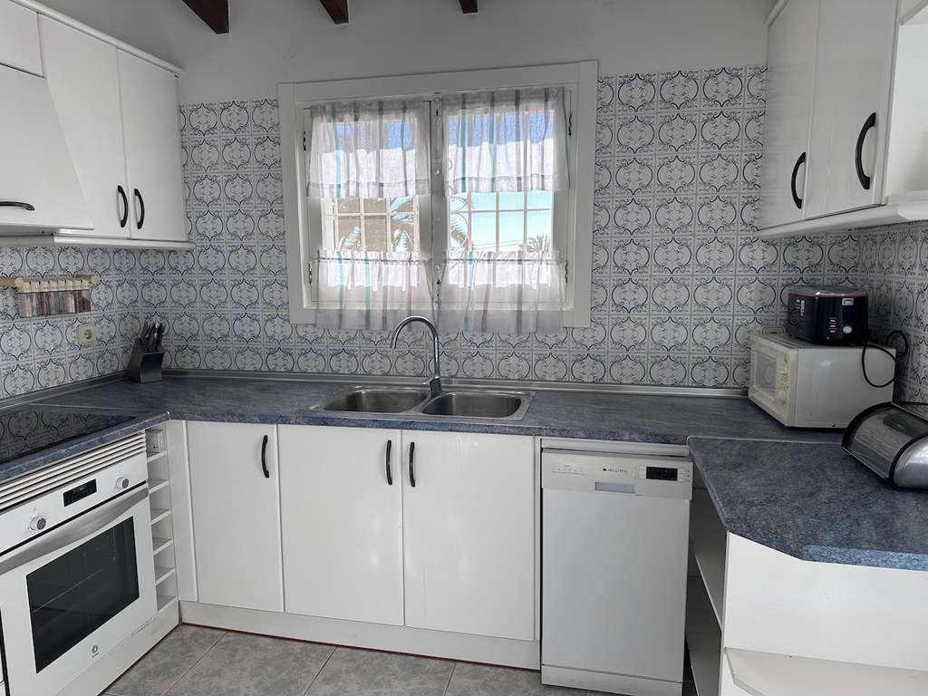 Esta atractiva villa con vistas al mar se encuentra en una generosa parcela de 800 m² y ofrece una cómoda vida en una sola planta, combinando privacidad, espacio y excelentes zonas al aire libre. Se accede a la propiedad a través de una naya acristalada que conduce directamente al luminoso salón-comedor, creando una distribución acogedora y práctica. Desde aquí se accede a una cocina independiente y bien proporcionada con un lavadero adyacente.