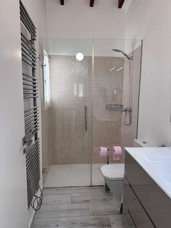 La villa ofrece tres dormitorios, todos equipados con aire acondicionado, un cuarto de baño reformado con ducha a ras de suelo y un aseo adicional para invitados. La distribución es ideal tanto para vivir de forma permanente como para pasar las vacaciones, ya que todas las zonas de estar principales están convenientemente dispuestas en la misma planta.