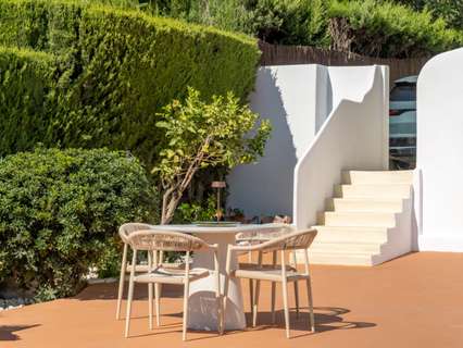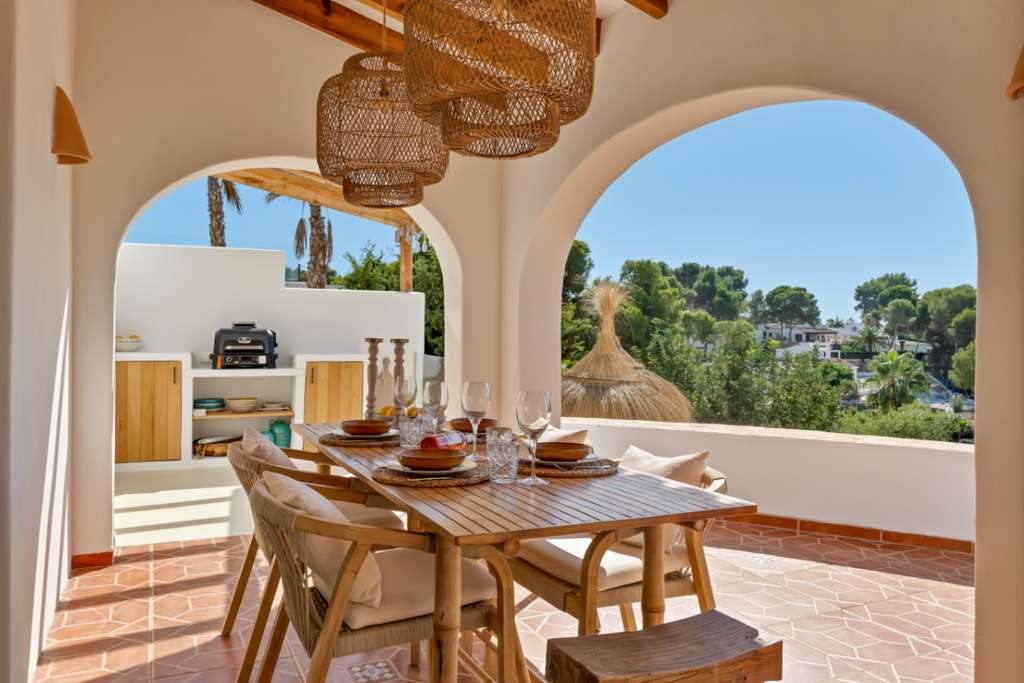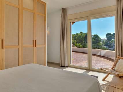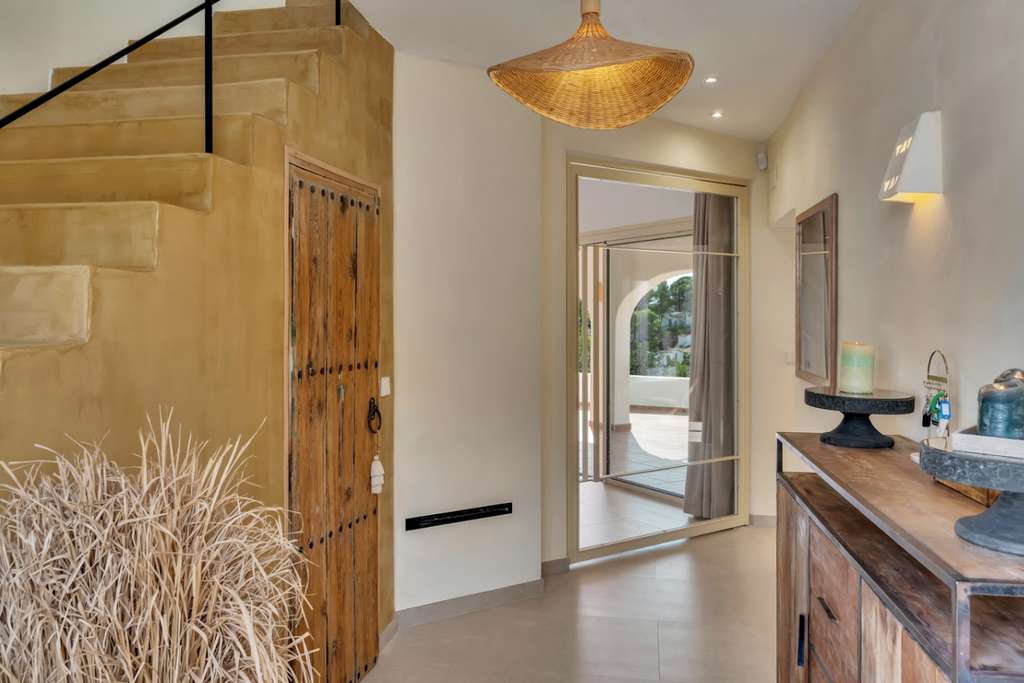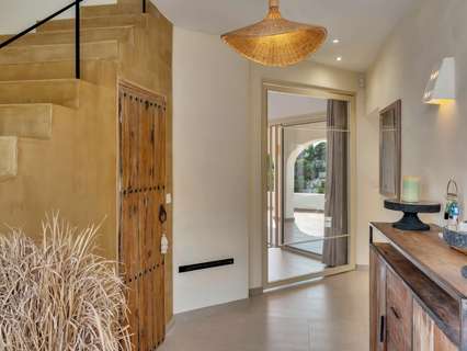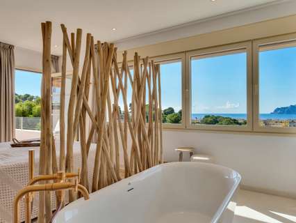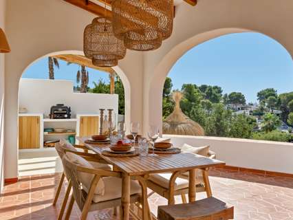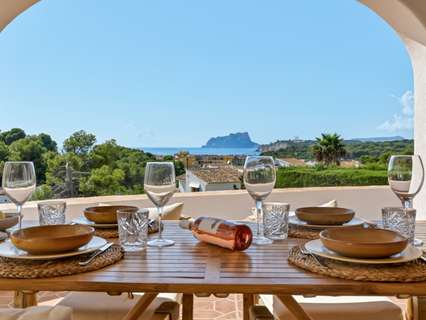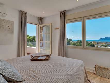 Exclusiva villa mediterránea con vistas panorámicas al mar en una ubicación privilegiada en MorairaEsta timeless, completamente renovada villa mediterránea combina lujo, tranquilidad y una ubicación excepcional a solo 5 minutos a pie del centro y la playa de Moraira. Situada en una zona residencial tranquila y exclusiva, esta propiedad orientada al sur ofrece una rara mezcla de privacidad, comodidad y proximidad a todos los servicios.Moraira es conocida por su estilo de vida relajado, excelentes restaurantes, encantadoras boutiques y su pintoresco casco antiguo. Gracias a su ubicación central, aquí podrá disfrutar durante todo el año de lo mejor que la Costa Blanca tiene para ofrecer.La villa tiene una superficie habitable de aproximadamente 250 m² y ha sido renovada con atención al detalle utilizando materiales de alta calidad. El diseño combina la elegancia mediterránea con un sutil toque de Ibiza. En la parcela de 735 m² disfrutará de unas vistas impresionantes al mar y al icónico Peñon d’Ifach.A través del acceso controlado por video, accede a la jardín de bajo mantenimiento y entra por una impresionante puerta de Iroko. El amplio recibidor con aseo para invitados conduce a un luminoso espacio de vida abierto que incluye sala de estar, comedor y cocina moderna con isla, equipada con electrodomésticos Bosch de calidad. La estufa de pellets con control wifi añade un ambiente extra y comodidad. Grandes ventanales permiten la entrada de abundante luz natural y conectan el espacio habitable con dos terrazas: en la parte delantera, una hermosa naya con arcos y vistas panorámicas al mar, y en la parte trasera, un íntimo patio rodeado de greenery.En la planta principal hay un amplio dormitorio con armarios empotrados y un baño en suite de microcemento con ducha a ras de suelo y acceso directo a la terraza. La planta superior cuenta con un espacio polivalente y dos dormitorios, cada uno con su propio baño. La suite principal es un verdadero atractivo con vistas panorámicas al mar, baño abierto con bañera exenta y ducha, vestidor y una terraza privada cubierta.El espacio exterior está diseñado para disfrutar de la vida mediterránea al máximo, con terrazas al sol, una zona de barbacoa cubierta y una piscina totalmente privada con sol todo el día. En el mismo nivel se encuentra un apartamento de invitados completamente equipado con baño, salón y rincón de café. Además, hay un lavadero separado, trastero y dos plazas de aparcamiento en la propiedad.La villa está totalmente aislada y equipada para vivir cómodamente todo el año, con aire acondicionado en todos los espacios, paneles solares, calentador solar, sistema de alarma con cámaras y preinstalación para cargar vehículos eléctricos.Características principales:• A solo 600 metros del centro y la playa• Vistas panorámicas al mar y al Peñon d’Ifach• Ubicación orientada al sur• 3 dormitorios con baños en suite + apartamento de invitados• Amplia naya y patio• Jardín de bajo mantenimiento• Piscina privada• 2 plazas de aparcamiento en la propiedad• Villa energéticamente eficiente y completamente aisladaUna villa con carácter para quienes buscan calidad, privacidad y una ubicación envidiable junto al mar. Ideal como residencia permanente o casa de vacaciones exclusiva. Contáctenos para una visita y déjese sorprender por esta propiedad única.