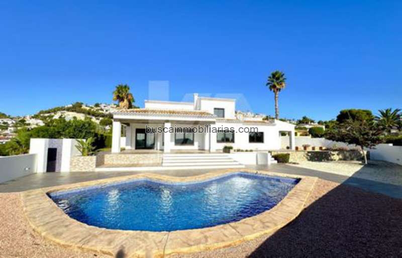 En venta: Villa mediterránea con vistas al mar en Moraira, Costa Blanca.Exclusiva villa en venta en Moraira (Alicante), ubicada en lo alto de una colina con vistas panorámicas al mar, la bahía y la Torre de Moraira. Situada sobre una parcela llana de 897 m², esta propiedad ofrece privacidad total, fácil acceso y excelente conexión con servicios, playas y el centro urbano.Distribución