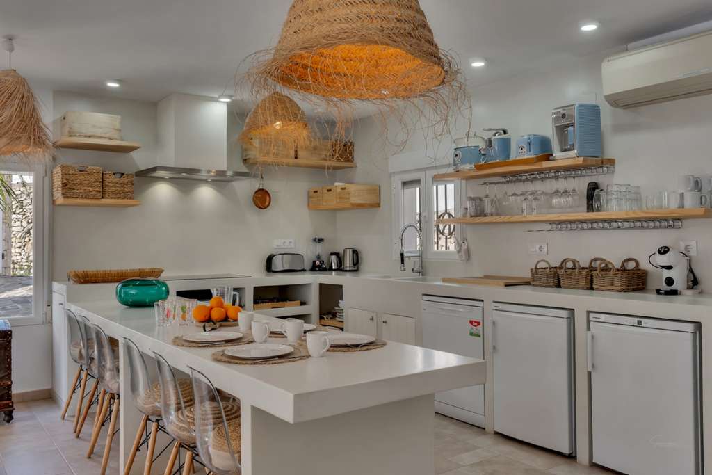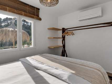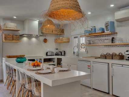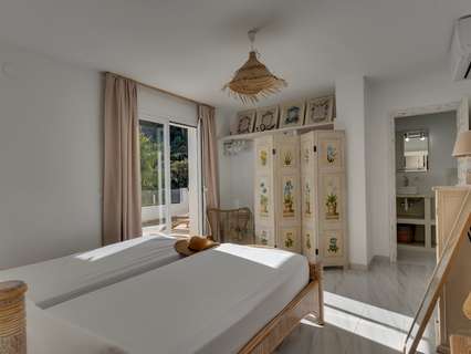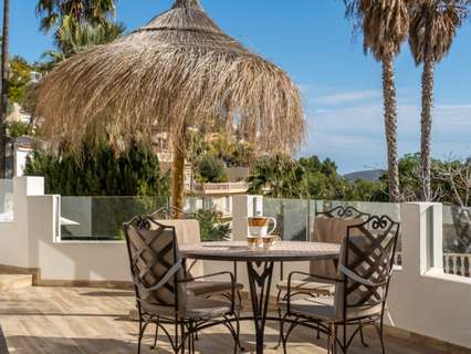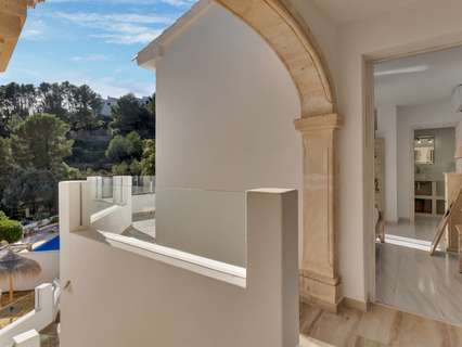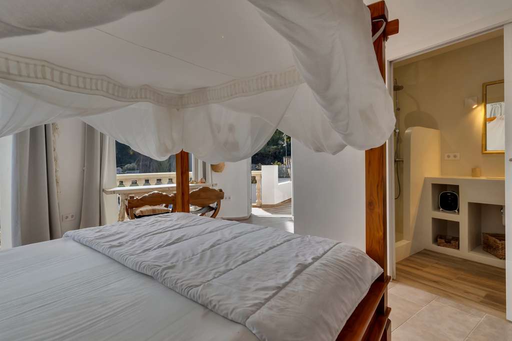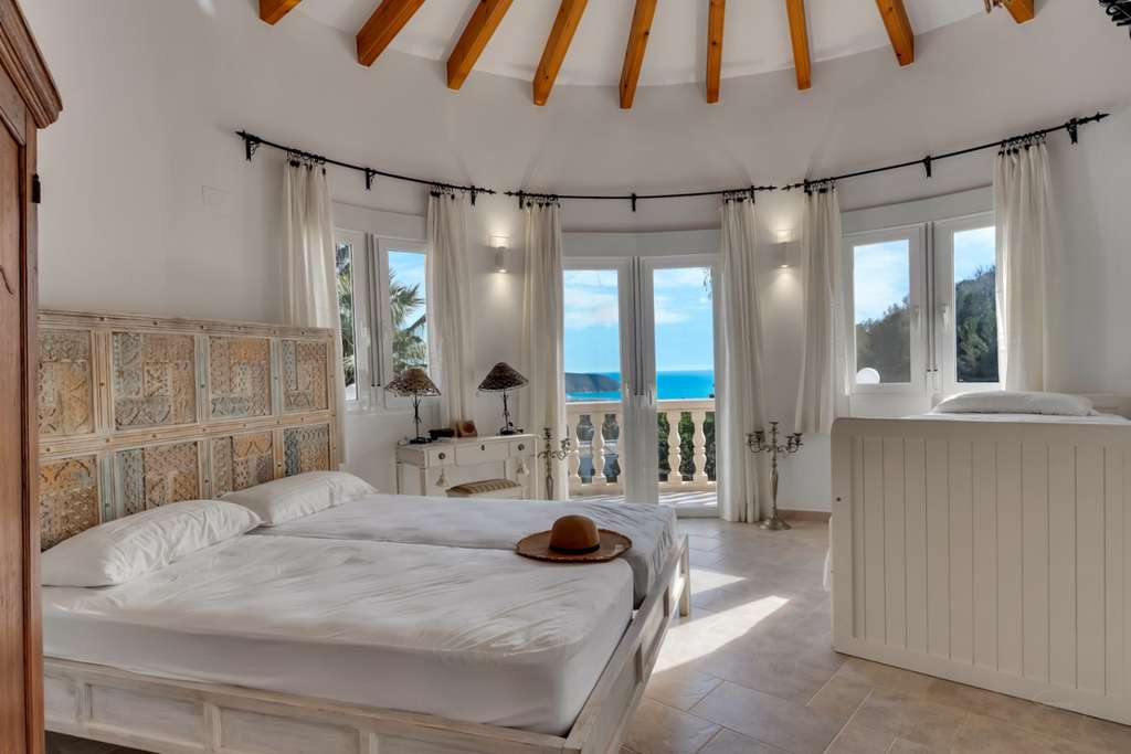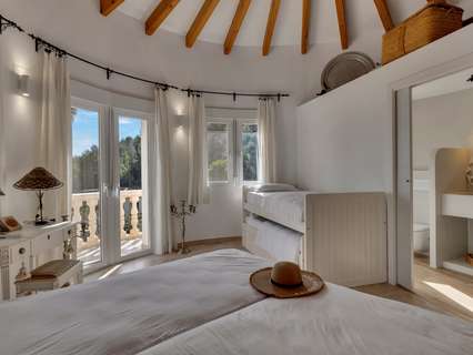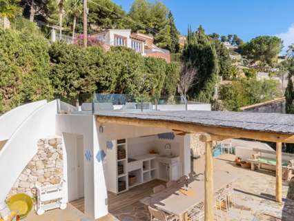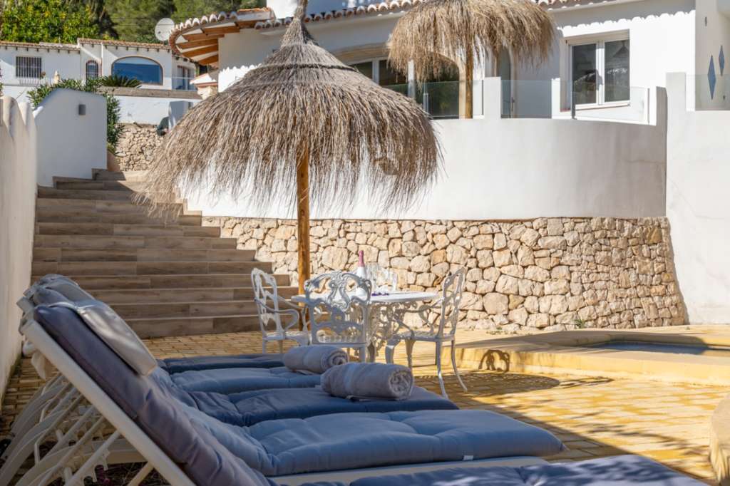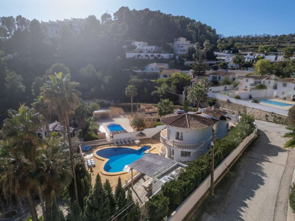 Villa única en venta con cinco dormitorios, vistas al mar y buena orientación solar en Benimeit, MorairaNos enorgullece presentarles esta exclusiva villa, ubicada en el querido Benimeit en Moraira. Una ubicación tranquila y soleada, y aún así a solo una corta distancia en coche de todas las comodidades, el centro y las playas.Accederá a la propiedad a través de una gran puerta eléctrica que da acceso a un amplio aparcamiento. Desde aquí podrá acceder a la vivienda completamente a nivel del suelo, sin escaleras – ¡un beneficio particularmente cómodo!Al entrar encontrará una acogedora y luminosa sala de estar con estufa de leña y con una cocina abierta totalmente renovada, terminada en elegante microcemento. Todos los electrodomésticos están presentes y la mesa de comedor de microcemento, conectada sin fisuras con la cocina, invita a largas y agradables veladas de cena. En este nivel también hay dos encantadores dormitorios que comparten una hermosa baño renovado, también en microcemento, equipado con bañera y lavabo doble.A través de una escalera interior se accede a la planta superior, que también se puede cerrar completamente, o puede acceder desde el exterior. Aquí encontrará un tercer amplio dormitorio con baño ensuite nuevo y un balcón privado de gran tamaño con increíbles vistas al mar y al centro de Moraira.A continuación, a través de un pasillo abierto que conecta las habitaciones tres y cuatro, se llega al siguiente dormitorio – también conocido como la “habitación torre”. Un espacio verdaderamente único con techos altos, típicas vigas de madera españolas, un baño ensuite renovado y nuevamente un balcón con espectaculares vistas al mar.Por último, pero no menos importante, hay un quinto dormitorio en la planta baja, con acceso privado exterior, cama balinesa y baño ensuite en microcemento. Desde esta habitación puede acceder directamente a la hermosa terraza ajardinada con elegantes sombrillas y una cocina exterior cubierta completamente equipada – el lugar perfecto para disfrutar de sombra, convivencia y largas cenas durante los cálidos días de verano. Cuando cae la noche, puede subir un nivel: en la terraza de la azotea sobre la cocina exterior disfrutará de una copa de vino observando las luces de la zona y la mágica atmósfera.A través de una escalera hacia abajo se llega a la zona de la piscina. La gran piscina tiene una forma atípica – ¿puede adivinar cuál? – y está rodeada de amplias terrazas para tomar el sol. Hay dos trasteros y una hermosa ducha exterior en piedra natural que completan el conjunto.La vivienda está equipada con aire acondicionado para enfriar y calentar, termo solar, doble acristalamiento (en parte con persianas), tiene una excelente orientación solar y disfruta de total privacidad. Además, la villa actualmente se alquila muy bien, lo que hace que esta villa sea especialmente interesante como inversión.Características principales:Vistas al marBuena orientaciónCinco dormitorios y cuatro baños (3 ensuite)Cocina exterior cubierta completamente equipadaPrivacidadActualmente alquilada bien - interesante como inversiónDoble acristalamiento, baños y cocina renovados, aire acondicionadoA poca distancia en coche de servicios, playa y centroUbicada en un lugar tranquilo, sin miradas externas, con sol casi todo el día y una vista excepcional: aquí encantos, comodidad y rendimiento se combinan a la perfección.No espere más y haga su cita hoy para descubrir esta única villa.