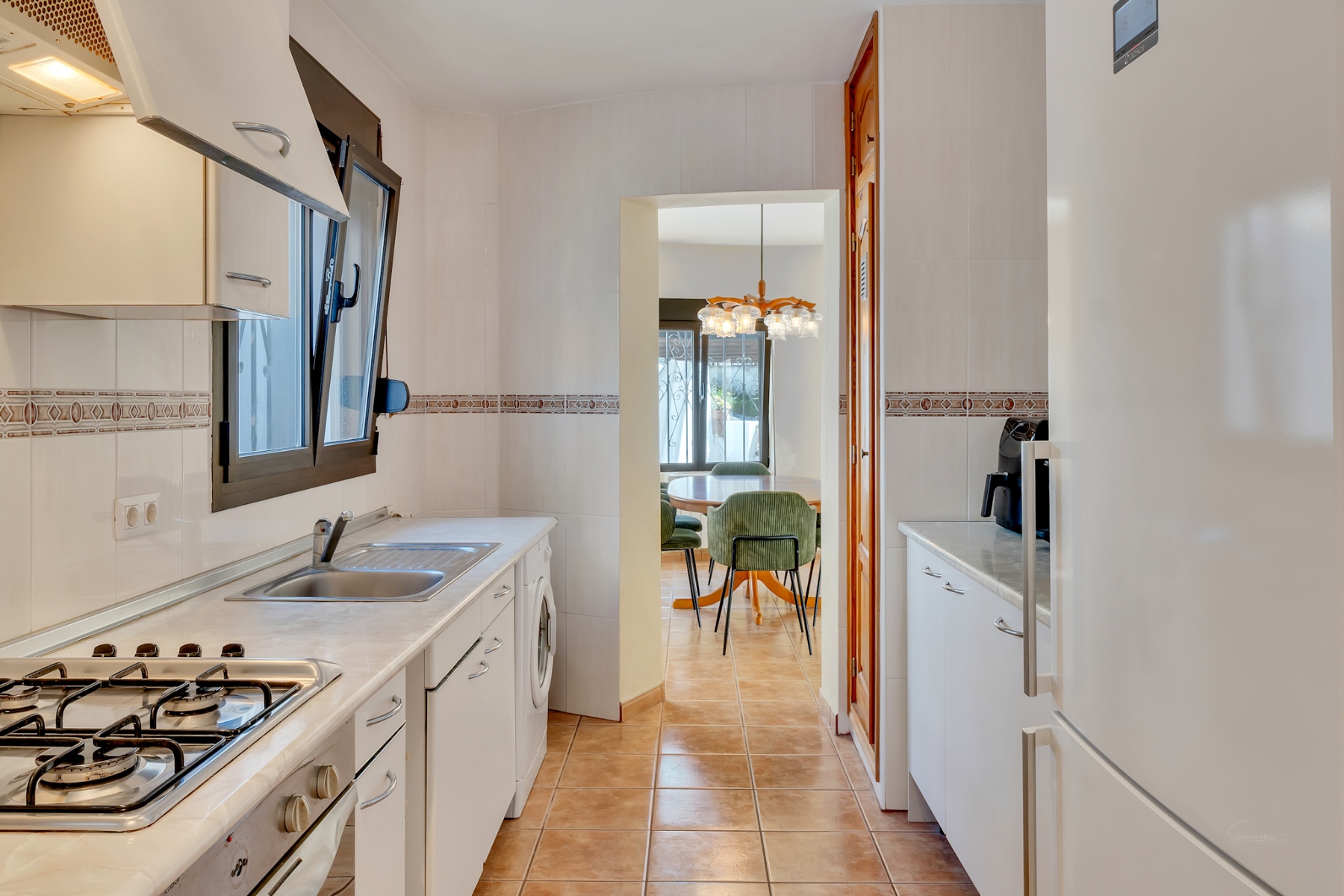 La planta baja, con acceso desde el jardín, se encuentra al nivel de la piscina recién renovada y consta de 3 dormitorios, 2 baños, cocina, comedor y sala de estar. Hay una encantadora terraza cubierta, ideal para cenar al aire libre o simplemente para relajarse y disfrutar del jardín y la piscina.