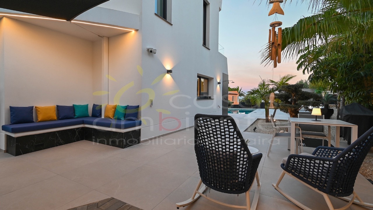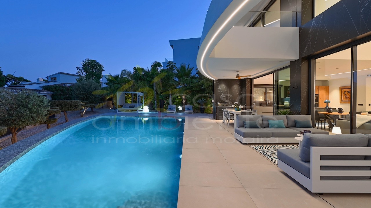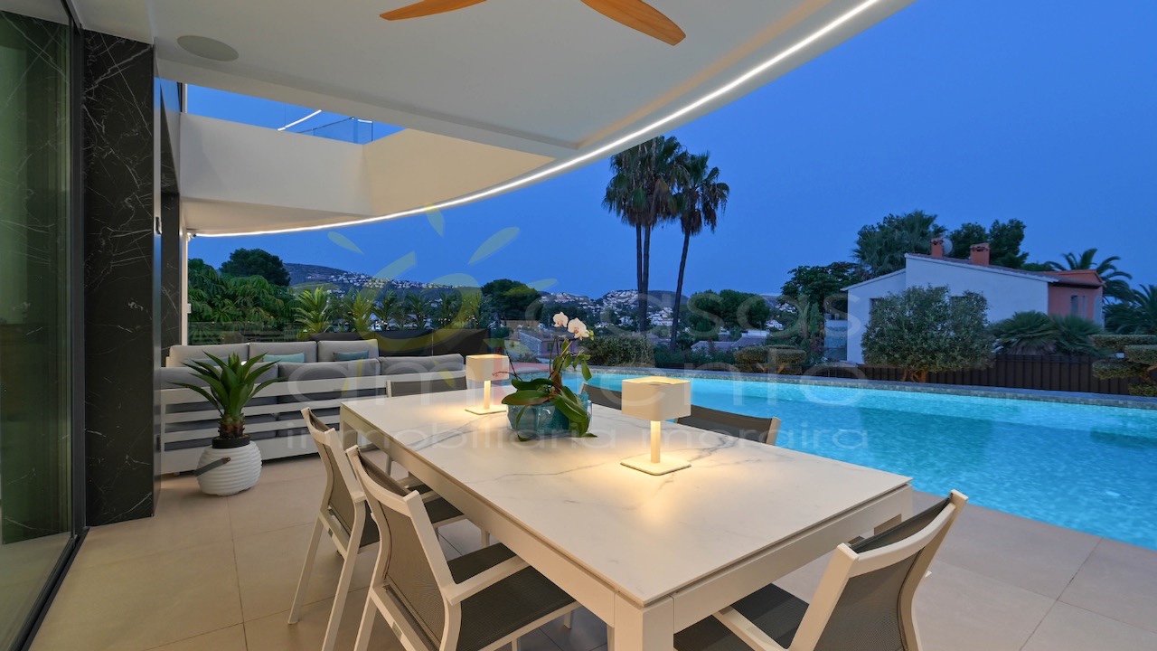 Esta villa contemporánea en Moraira combina un diseño elegante, tecnología avanzada y unas impresionantes vistas al Mediterráneo. Situada en una tranquila zona residencial, ofrece privacidad a solo unos minutos de las playas, el puerto deportivo, los restaurantes y las tiendas.
