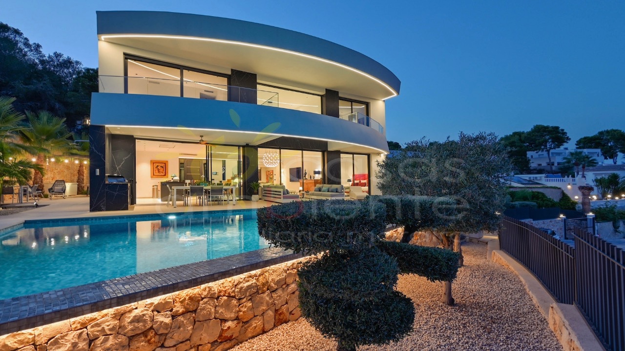 Moderna villa de lujo con vistas al mar y a la montaña en Moraira