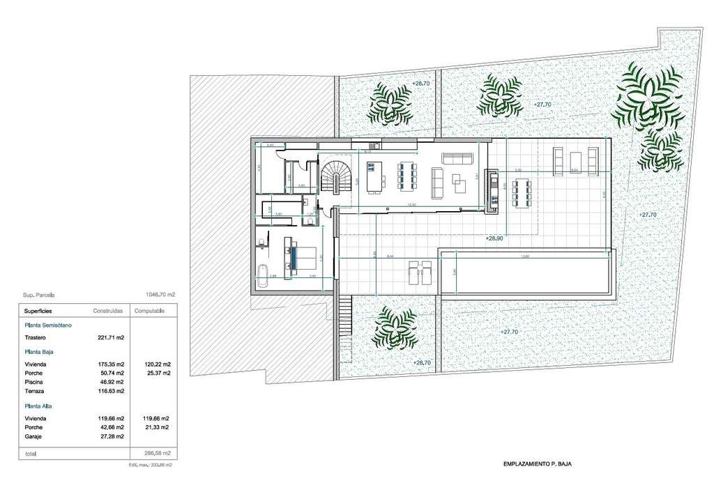 EXTRAS: Carpintería técnica con cristales de seguridad, cocina completa con electrodomésticos Siemens, baños y grifería completa de la marca roca, iluminación LED, sistema de aerotermia para agua caliente y suelo radiante, aire acondicionado por conductos (frío y calor) en toda la casa, placas solares, armarios empotrados, persianas eléctricas, alarma interior, preinstalación de alarma exterior y cámaras de seguridad. Piscina rectangular con sistema de desbordamiento zona de barbacoa, lavadero, jardín terminado.