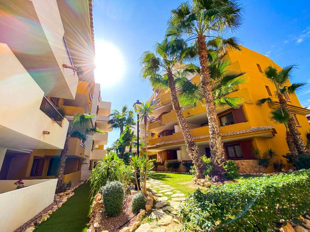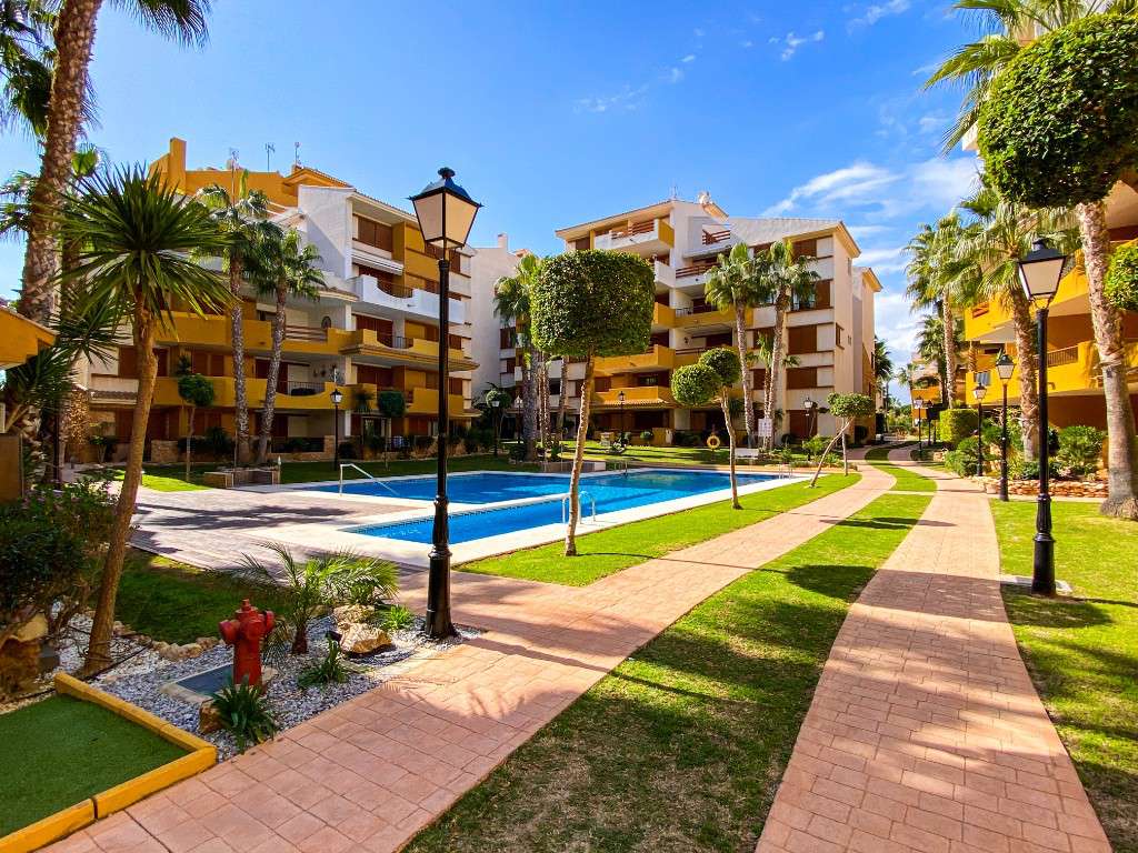 Ofrecemos para alquiler a corto plazo un encantador apartamento en el complejo La Recoleta, Punta Prima. El apartamento consta de 3 dormitorios, 2 baños (uno de los cuales es una suite), una cocina americana totalmente equipada y un amplio y soleado salón con balcón con vistas al inolvidable paisaje del mar Mediterráneo y el acogedor sabor español.La urbanización Recoleta cuenta con seguridad las 24 horas y es considerada una de las más hermosas de Punta Prima. Piscinas, áreas verdes y abundancia de plantas tropicales son perfectos para unas vacaciones exquisitas. A tan solo unos minutos andando las playas de arena de Punta Prima y una amplia gama de servicios - desde tiendas y supermercados hasta lugares de ocio como bares, restaurantes y el mayor centro comercial La Zenia Boulevard. En un radio de varios kilómetros se encuentran los famosos clubes de golf de Las Colinas y Campoamor.