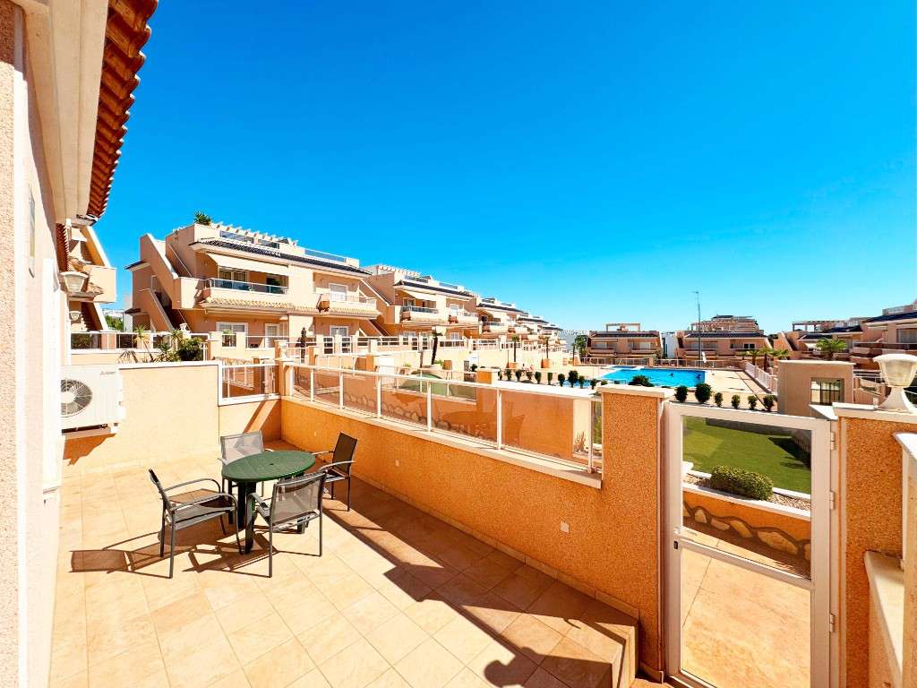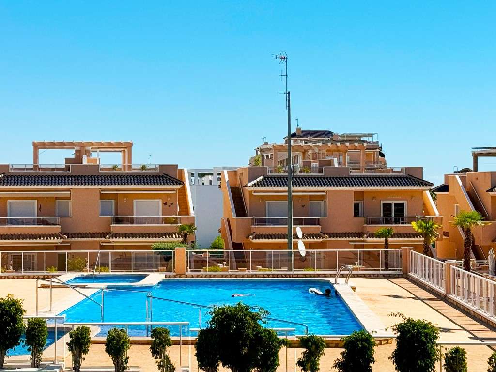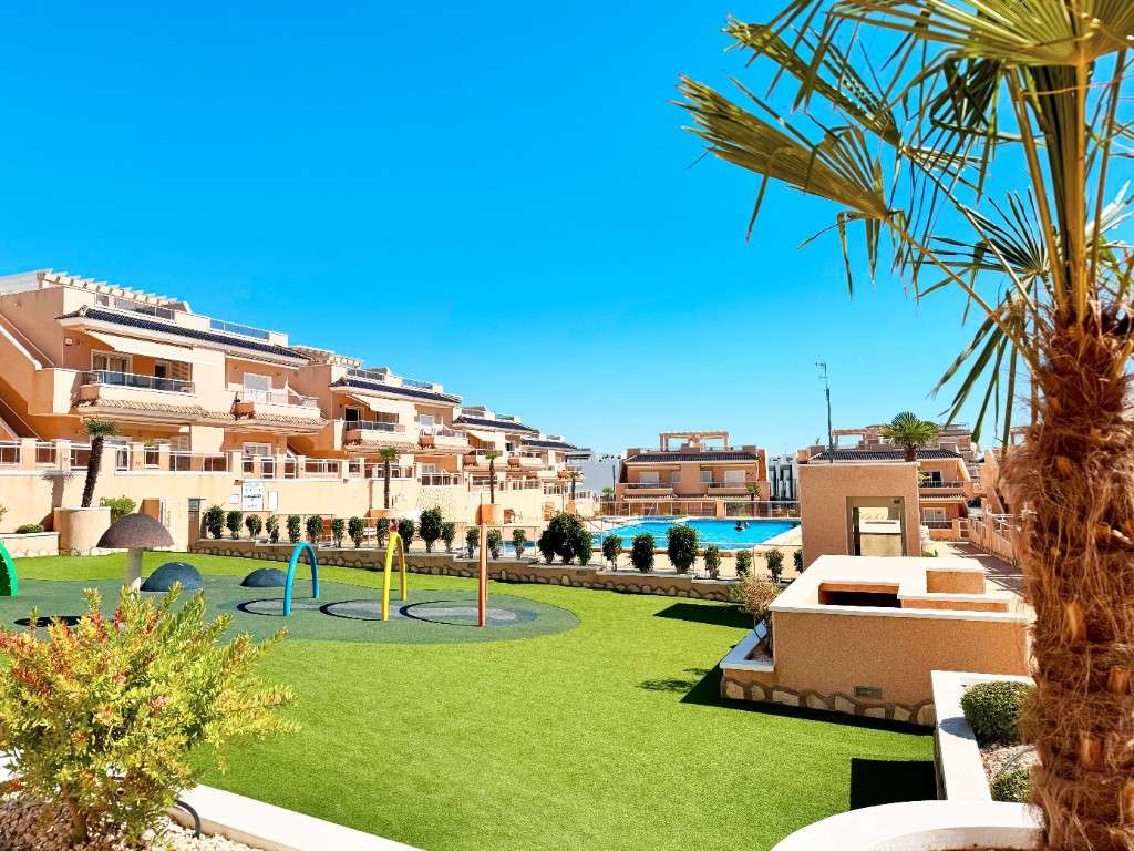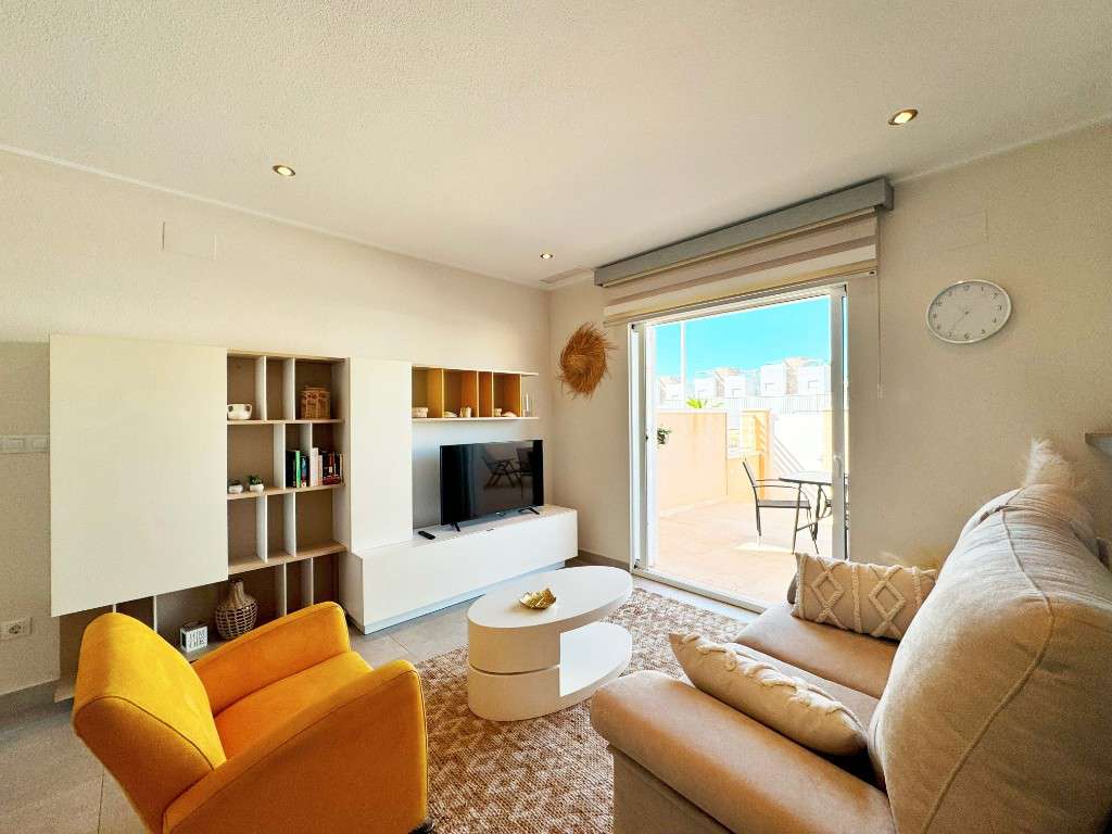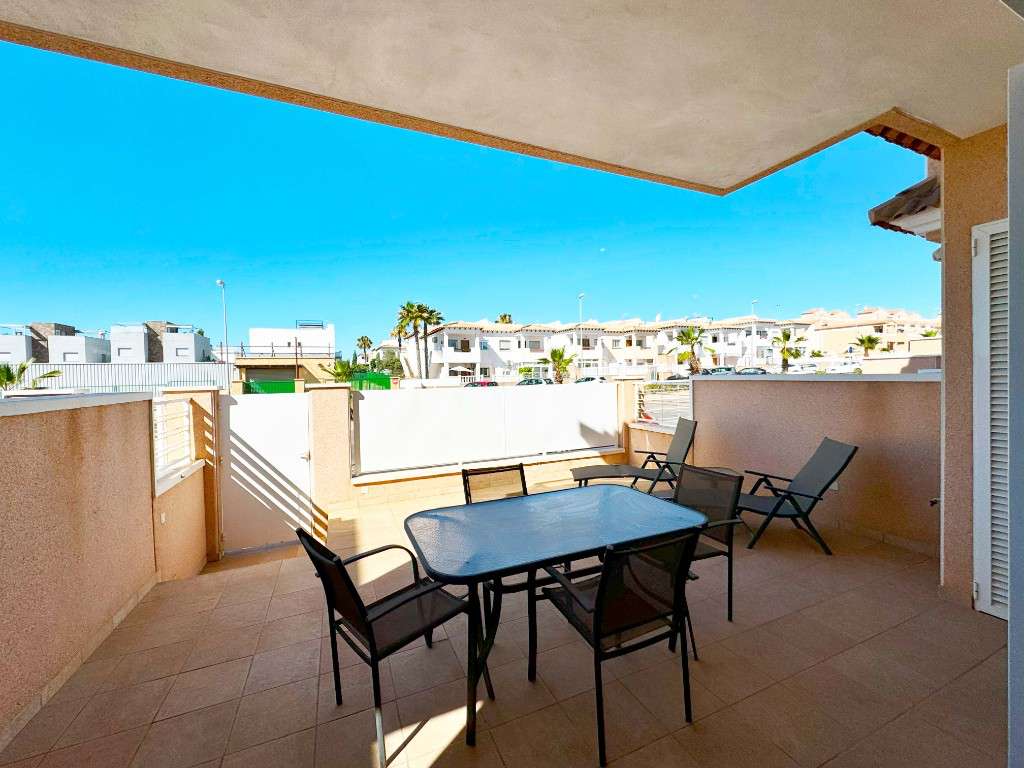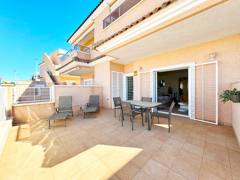Apartamento planta baja para alquiler de corta temporada en Vista Azul, Punta PrimaOfrecemos esta bonita propiedad en perfecto estado en la planta baja, con la terraza orientada al sur. La propiedad está ubicada en la comunidad cerrada Vista Azul, Punta Prima, muy cerca de todos los servicios posibles.El apartamento está completamente amueblado y consta de una gran terraza delantera orientada al sur, zona verde y espacio de almacenamiento, vestíbulo con armario empotrado, un amplio y luminoso salón/comedor con cocina abierta totalmente equipada, dos dormitorios con armarios empotrados, dos baños completos. (uno en suite) con calefacción por suelo radiante, aire acondicionado (frío/calor) en toda la propiedad, persianas eléctricas y una segunda terraza orientada a la zona verde comunitaria y piscina.La propiedad también dispone de una plaza de aparcamiento.El apartamento está listo para entrar a vivir y muy bien mantenido. El apartamento debe ser visitado para comprender plenamente su soberanía.