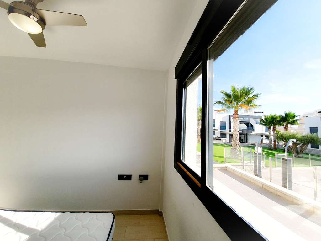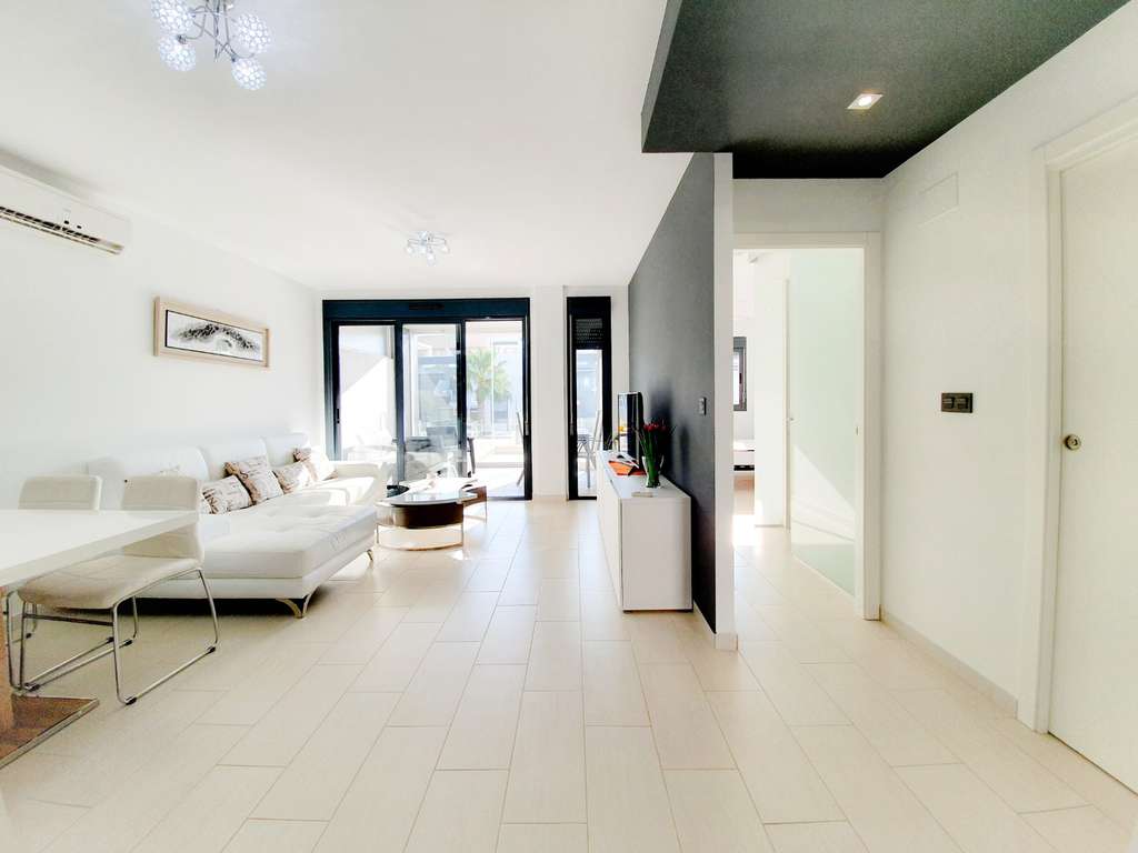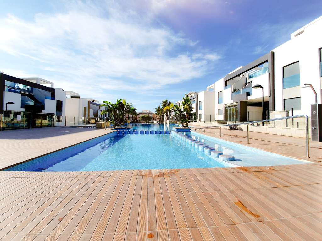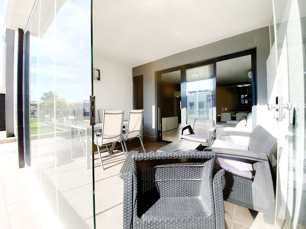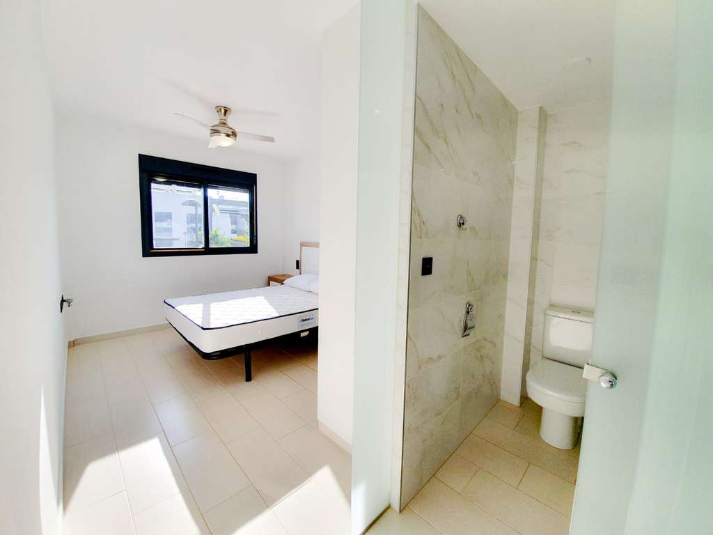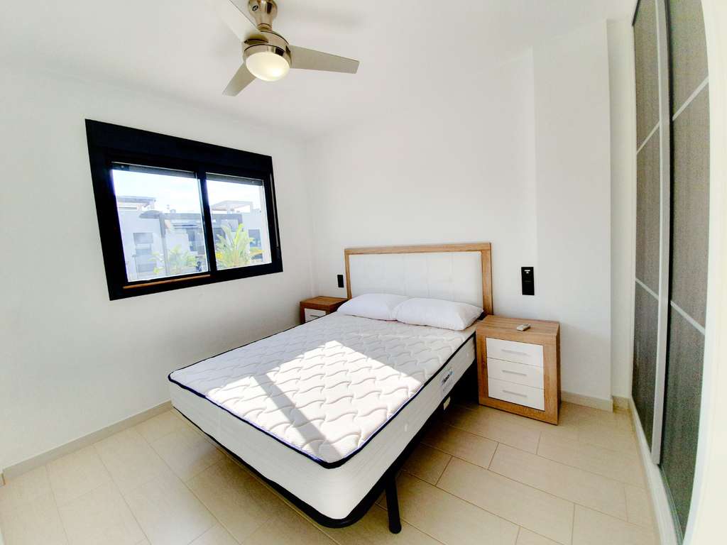 Bungalow en planta baja con un pequeño jardin, terraza acristalada con salida a la piscina, dos dormitorios con armarios empotrados, dos baños completos, unpo de ellos en suite, cocina americana totalmente equipada, salon comedor con salida a la terraza. Residencial con piscina, jacuzzi, zonas ajardinadas, parque infantil y parking. Esta situado en la zona de Los Altos ( Torrevieja), al lado de todo tipo de servicios, hospital, colegios, etc y cerca de la playa de Punta Prima.