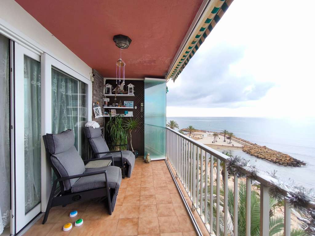 Este espectacular piso de tres habitaciones es el hogar ideal para aquellos que buscan disfrutar de la vida junto al mar. Situado en primera línea del mar y a pocos pasos del paseo marítimo de Torrevieja, este luminoso apartamento cuenta con un amplio salón que se abre a un balcón con vistas frontales al mar, donde podrás disfrutar de impresionantes amaneceres y atardeceres. La cocina independiente está totalmente equipada, perfecta para preparar deliciosas comidas. El dormitorio principal cuenta con baño en suite, brindando comodidad y privacidad, mientras que las otras dos habitaciones son espaciosas y luminosas. Además, dispone de un segundo baño, ideal para visitas.