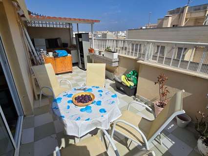 Ático en Torrevieja, Centro (Calle María Parodi)~Superficie: 95 m²~Amueblado: Semi amueblado y equipado~Climatización: Aire acondicionado~Orientación: Este~Distribución:~Dormitorios: 3~Baños: 1~Salón comedor: Amplio~Cocina: Independiente, amueblada y equipada~Terraza: Grande y soleada~Ubicación:~En pleno centro de Torrevieja~Cerca de la Plaza del Ayuntamiento~A 500 metros del puerto, el paseo marítimo y el mar~Próximo a comercios y servicios