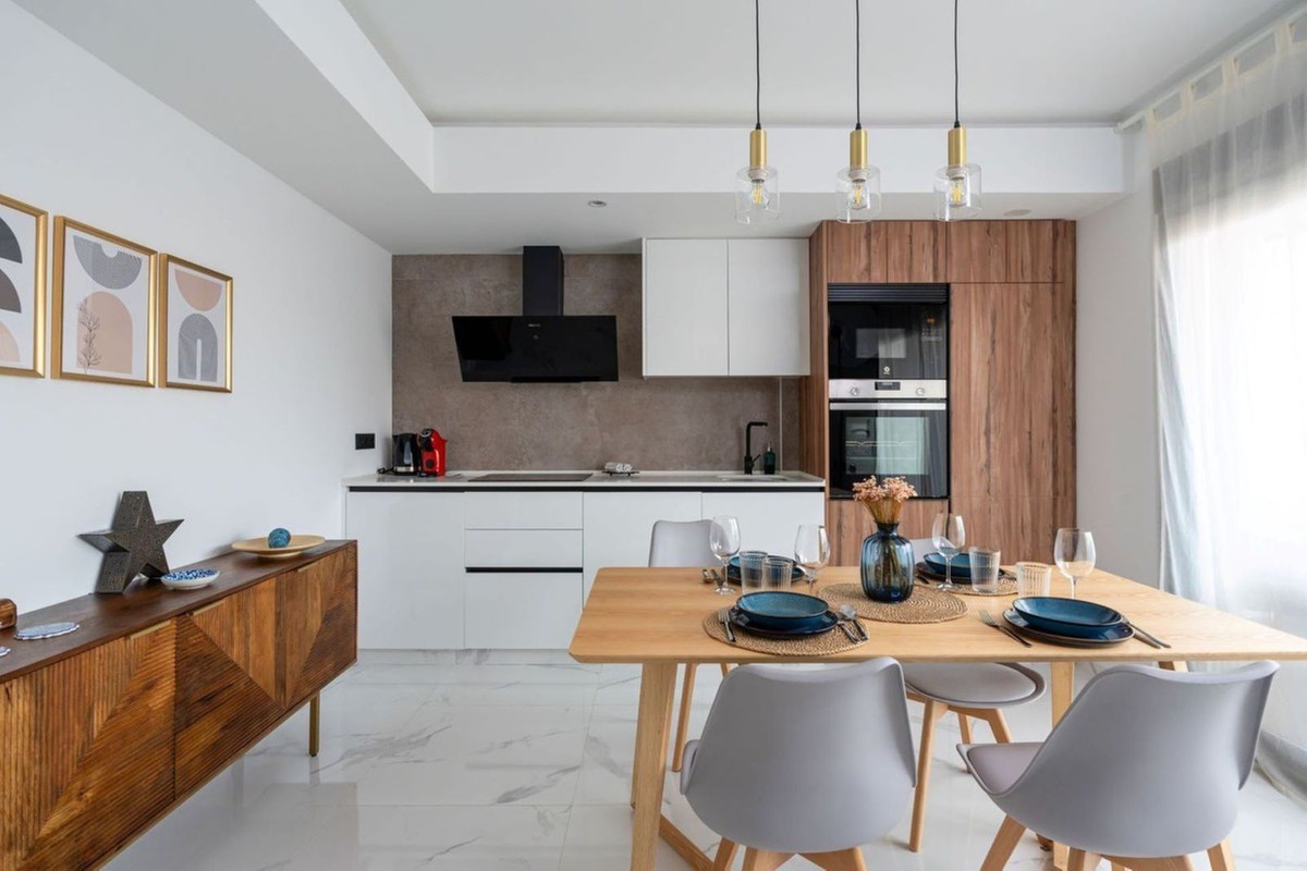 Moderno apartamento de tres habitaciones y dos baños.Presentamos un moderno apartamento de tres dormitorios y dos baños, situado en el corazón de Torrevieja. El apartamento está ubicado en un edificio íntimo, donde solo hay cuatro apartamentos en cada piso, lo que garantiza la privacidad y comodidad de los residentes.