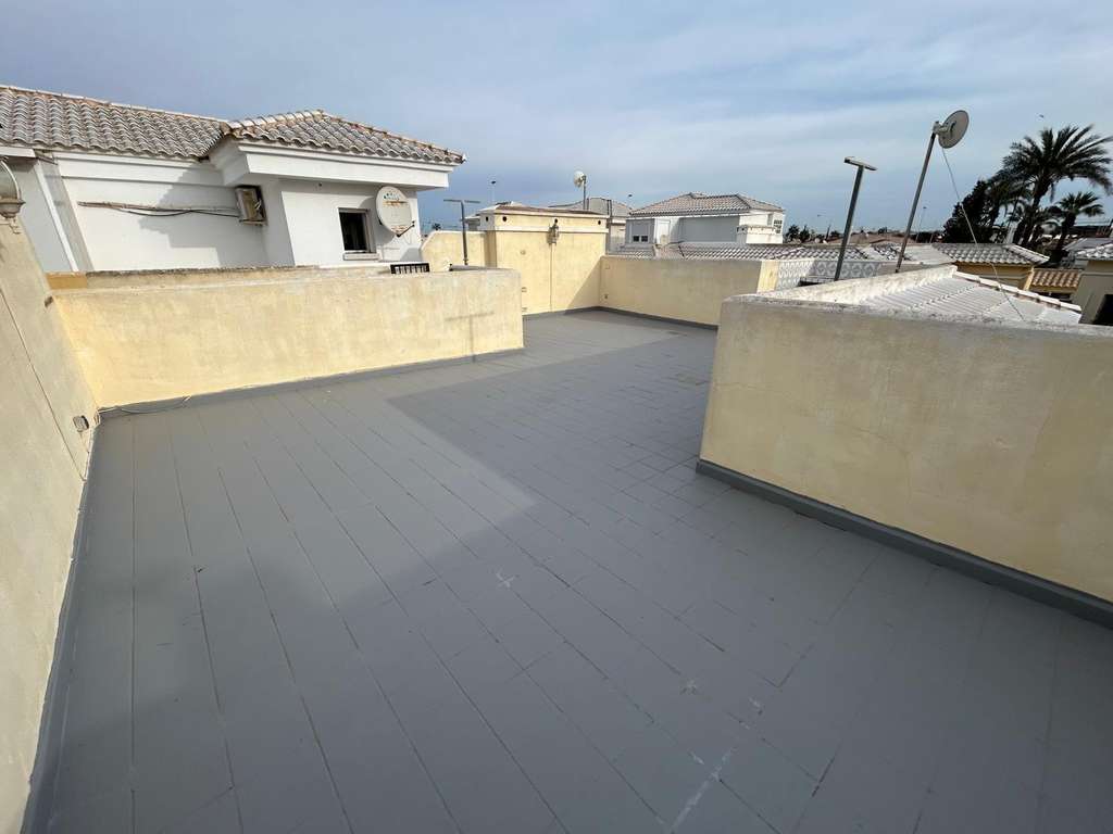 BUNGALOW ADOSADO SIN VECINOS ARRIBA EN RESIDENCIAL DAVINCI, TORREVIEJA.~Consta de 2 dormitorios ~1 baño~Terraza ~Cocina independiente ~Trastero ~Amplio jardín con entrada para coche ~Solárium ~Piscina comunitaria ~