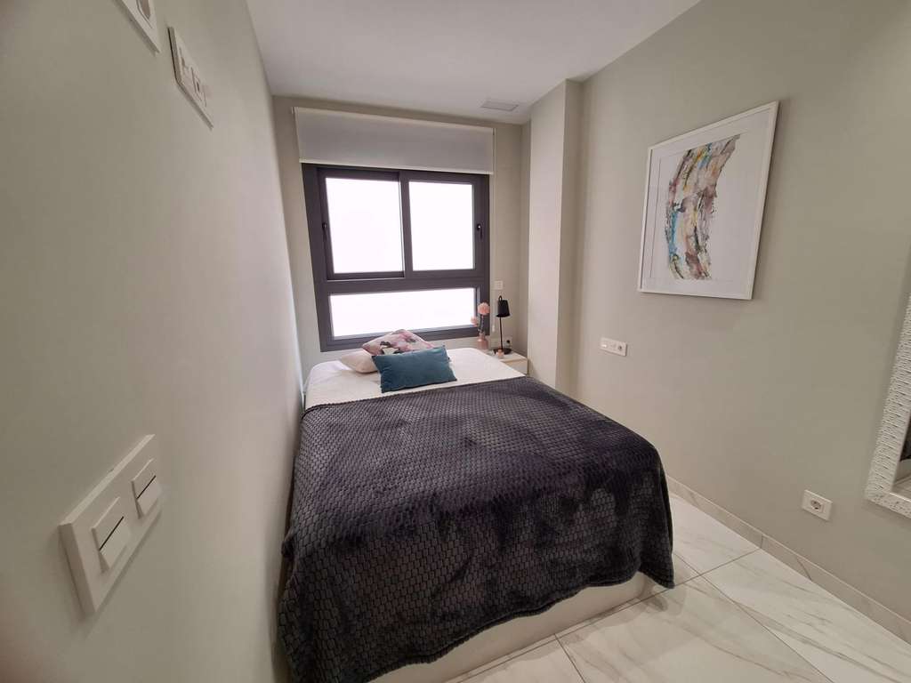 Descubre este magnífico apartamento seminuevo ubicado en el corazón de Torrevieja, dentro del destacado edificio Alegría 11. Con una superficie de 77 m² y a tan solo550 metros de la playa, esta propiedad es ideal para disfrutar del estilo de vida costero que tanto deseas. El inmueble cuenta con una habitación doble y otra sencilla, además de dos baños completos que ofrecen comodidad y funcionalidad. La cocina está totalmente equipada y destaca por su elegante suelo de mármol así como carpintería exterior en aluminio.~~Entre los extras destacados se encuentran armarios empotrados amplios, un ascensor moderno que facilita el acceso al piso superior donde se ubica la vivienda luminosa; también podrás disfrutar desde tu balcón privado o relajarte junto a la piscina comunitaria despuésde un día bajo sol radiante.~~Este hogar ofrece calefacción central para más confort durante épocas frías,y seguridad adicional gracias a puerta blindaday sistemas automatizados.En las instalaciones comunes encontrarás sauna con vistas al mar perfecto para desconectar tras jornada agotadora.Hay techos altosque brindan sensaciónde amplitud e iluminacion natural.También dispondrásdeterraza privadaen lujoso entorno urbano rodeado degreenery,zona infantil cercana parques supermercados colegios centros médicos accesibles mediante transporte público facilitando movilidad diaria.Así pues,toda comodidades necesarias están presenteshaciéndolo lugar óptimo vivir invertir! No pierdas oportunidad única adquirirlo.