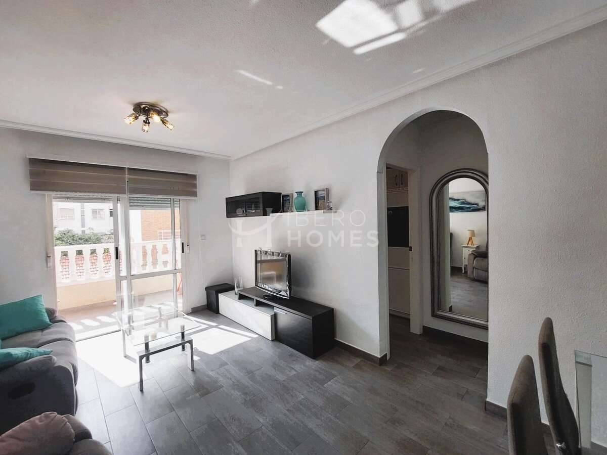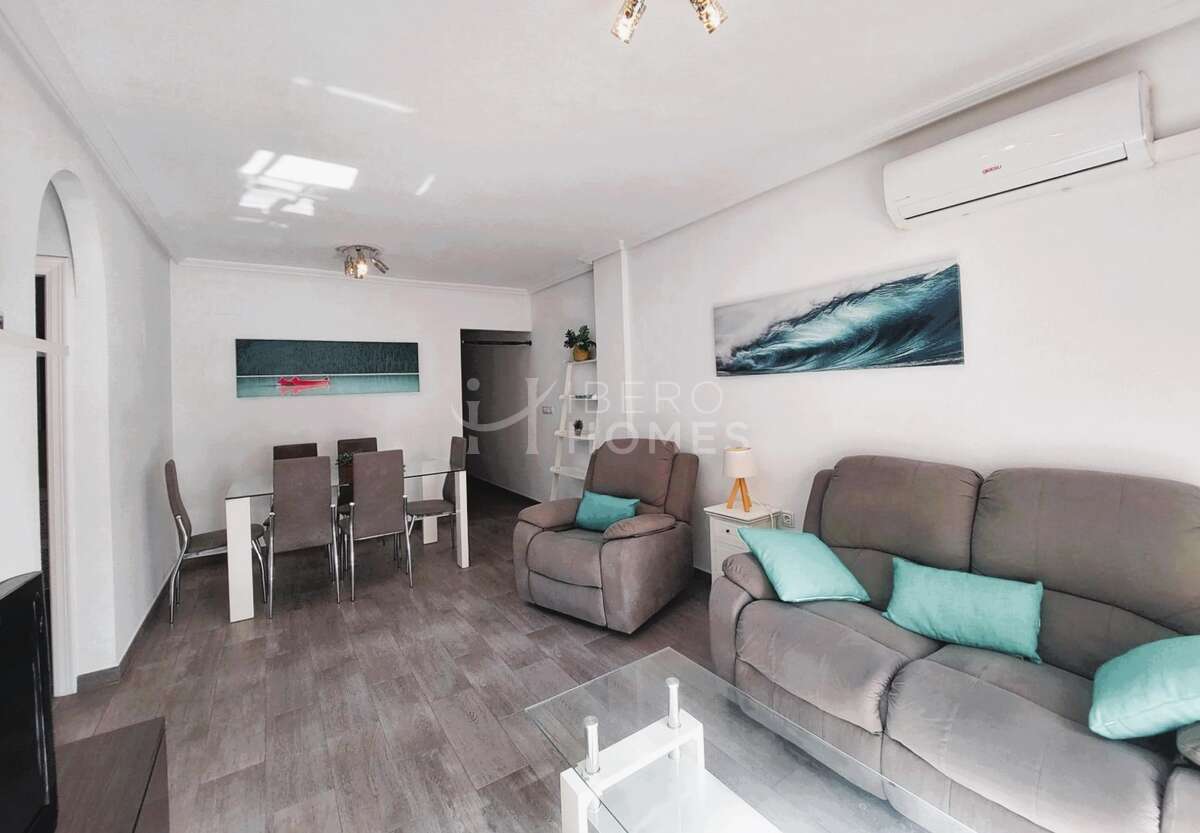 Bonito apartamento reformado y muy luminoso con 2 dormitorios dobles (1 con un pequeño vestidor), 1 baño, espacioso salón-comedor, amplia cocina independiente, patio interior (que se entregará pintado y con el techo reformado) y terraza de orientación sur.~~Se vende amueblado, con electrodomésticos y aire acondicionado.~~Céntrico, a 1 calle de Caballero de Rodas y a 600m del mar. Rodeado de todos los servicios necesarios, a 5 minutos caminando de la estación de autobuses.~~Ideal como inversión o para vivir todo el año.~