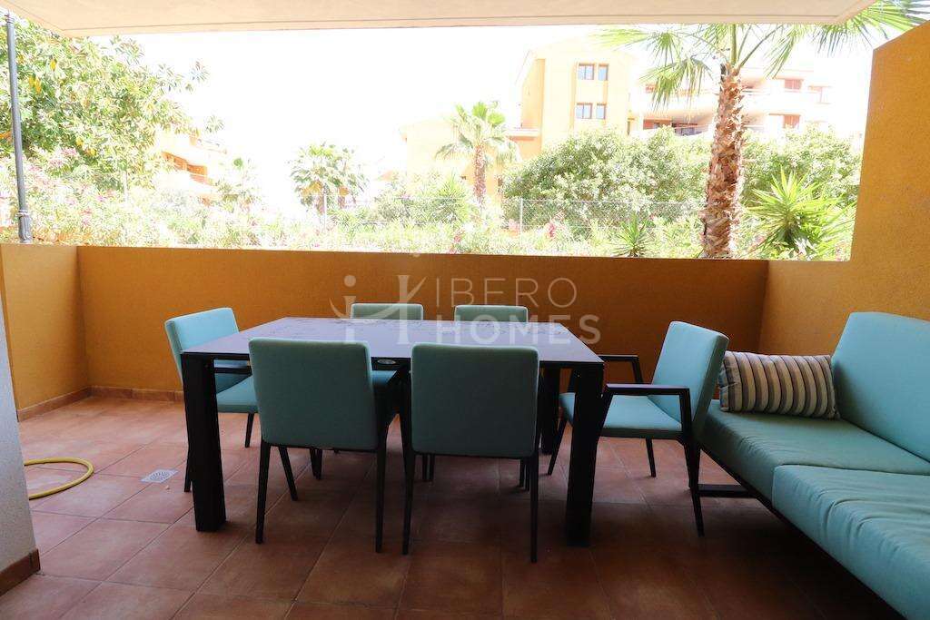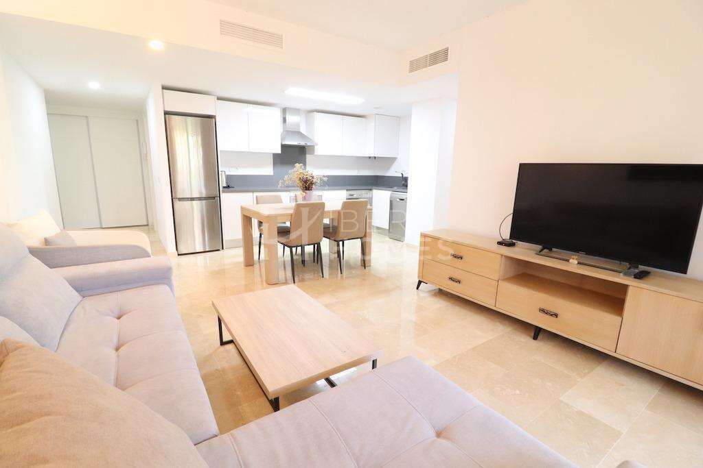 La Recoleta apartamento en planta baja, vivienda de 128 m2 con 3 dormitorios, 2 baños, cocina americana y amplio salón comedor, tiene una terraza de 13,20 m2 la vivienda se vende amueblada y con aire acondicionado cnetral,garaje y trastero, el residencial cuenta con ampllias zonas verdes y 3 amplias piscinas comunitarias.~