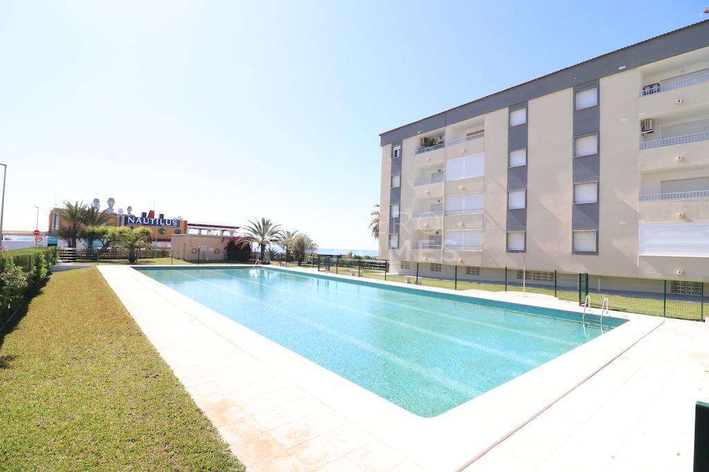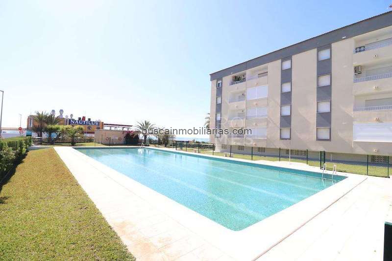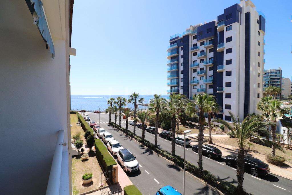 Punta Prima apartamento en planta tercera con ascensor orientación sur y vistas al mar a tan solo 100 mts de la playa, vivienda de 89 m2 construidos con 2 dormitorios, cocina grande independiente amplio salón comedor, baño y terraza la vivienda se vende amueblada y cuenta con un trastero, el residencial cuenta con amplias zonas verdes, zona infantil de juegos y una gran piscina comunitaria.~