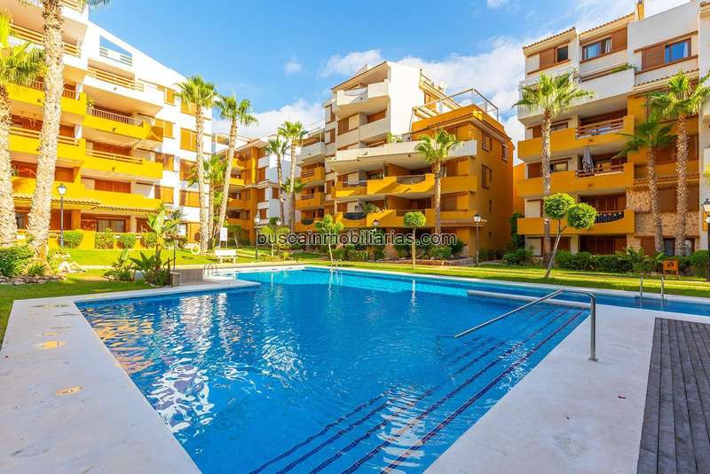 Bonito apartamento en Punta Prima (Orihuela costa) de 2 dormitorios y 2 baños (uno de ellos en-suite). La vivienda cuenta con salón-comedor, cocina americana. Tiene una terraza con orientación sur-oeste y vistas al parque. También cuenta con plaza de parking y trastero. Apartamento ubicado en un residencial con 3 piscinas comunitarias y zonas ajardinadas.