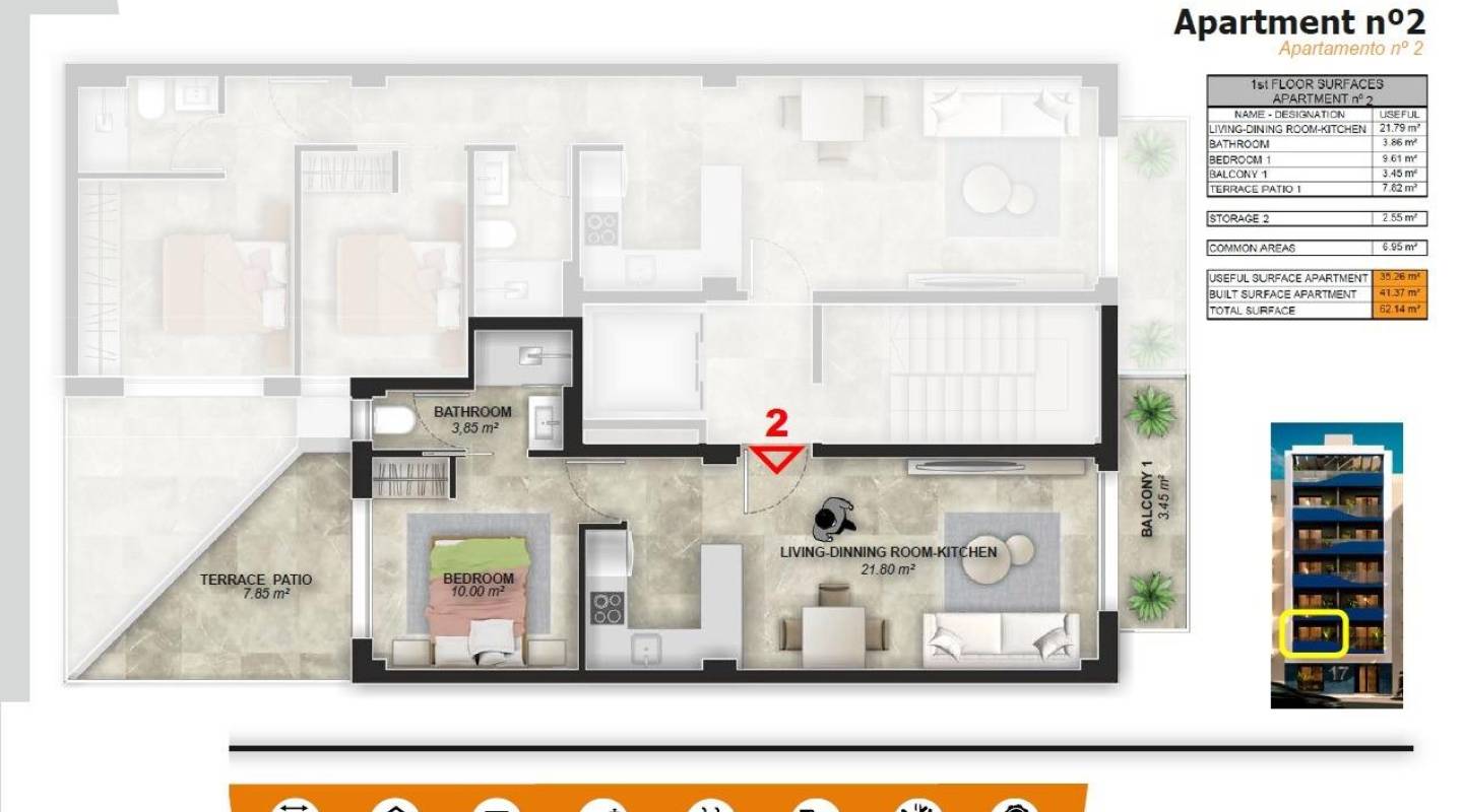 El edificio ofrece una selección de estudios, apartamentos de 1 y 2 dormitorios, y áticos con amplias terrazas privadas. Todas las viviendas cuentan con trastero incluido en la planta baja, y acceso a modernas instalaciones comunitarias que elevan el nivel de confort y estilo de vida.