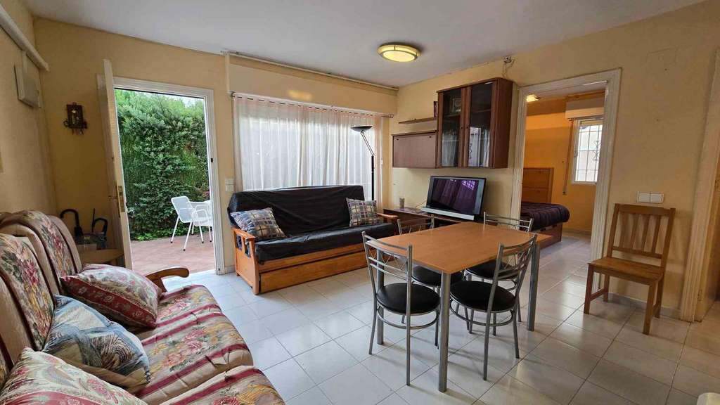 Bungalow en planta baja con patio en esquina y solárium privado – Torrevieja~~¡Oportunidad única! Este encantador bungalow en planta baja, situado en una esquina, ofrece comodidad, funcionalidad y un espacio extra perfecto para invitados o como zona independiente.~~La vivienda cuenta con:~~2 dormitorios amueblados, el principal con armario empotrado~~Salón-comedor amueblado, con aire acondicionado frío/calor~~Cocina americana totalmente equipada con electrodomésticos~~Baño completo con bañera~~Patio en esquina ideal para disfrutar al aire libre~~En la planta superior encontrarás un solárium privado que incluye:~✅ Un cuarto adicional con dos camas, aire acondicionado y aseo – perfecto como habitación de invitados o zona de relax~~El residencial dispone de:~????♀️ Piscina comunitaria~???? Zonas verdes para disfrutar del entorno~???? Ubicación excelente: cerca de supermercados, centro comercial, bares y todo tipo de comercios~~Orientación noroeste, ideal para quienes buscan una temperatura más fresca en verano.~~Una opción perfecta tanto para vivir todo el año como para disfrutar de las vacaciones en la costa.