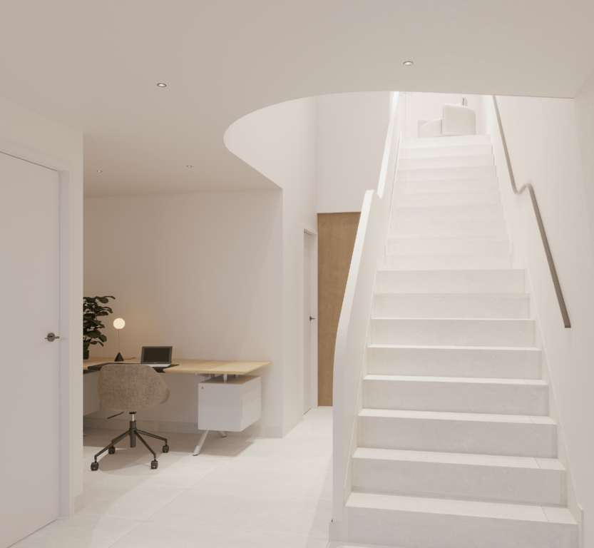 La residencia dispone de ascensor que comunica todas las plantas. Dentro del programa de acabados del cliente, hay opciones disponibles de colores, acabados y mobiliario de baño, para que cada vivienda pueda ser personalizada dentro del marco de diseño proporcionado.