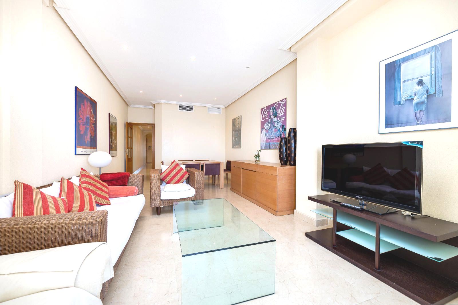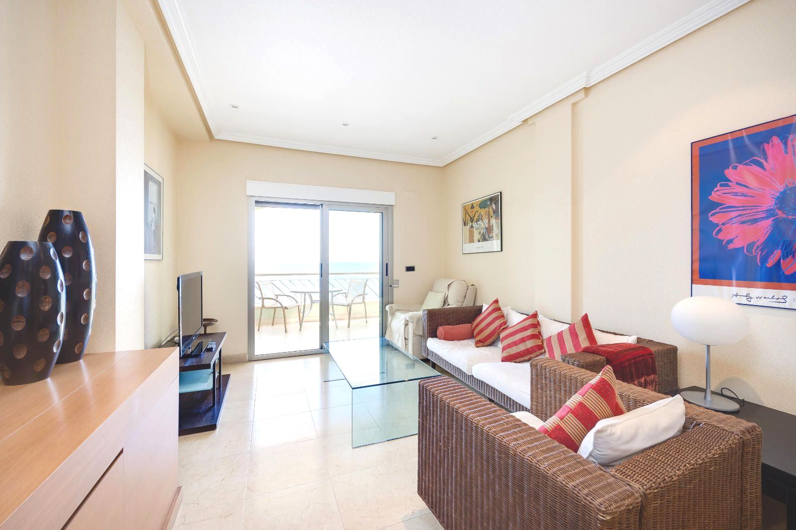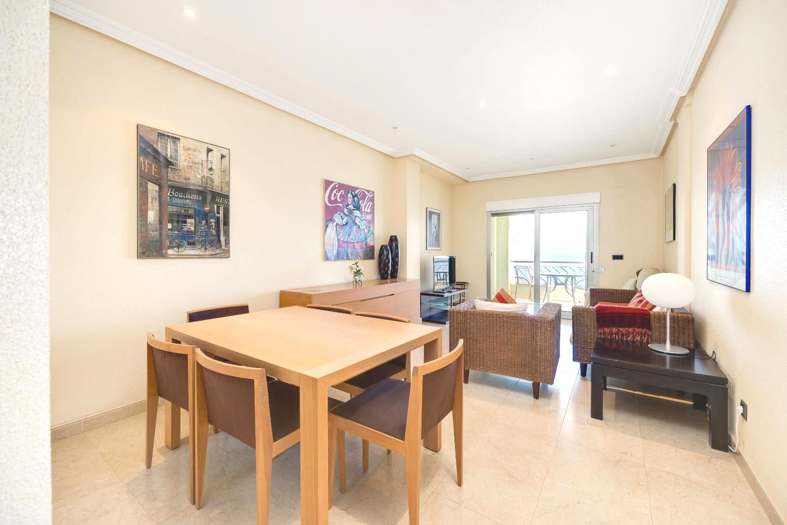Apartamento de 3 dormitorios en primera línea de playa, en 4.ª planta, con ascensor, terraza, solárium y aparcamiento.