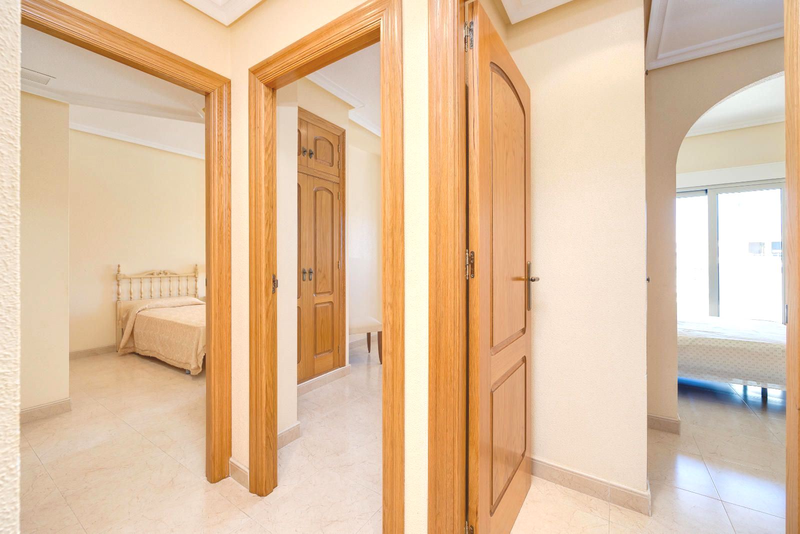 La propiedad cuenta con tres amplios dormitorios, todos con armarios empotrados, que ofrecen un amplio espacio de almacenamiento y una organización inteligente. Los dos baños completos están elegantemente equipados, ideales para el uso diario y para recibir invitados. El apartamento se entrega completamente amueblado y equipado con una decoración cuidadosamente seleccionada, listo para entrar a vivir sin necesidad de reformas.