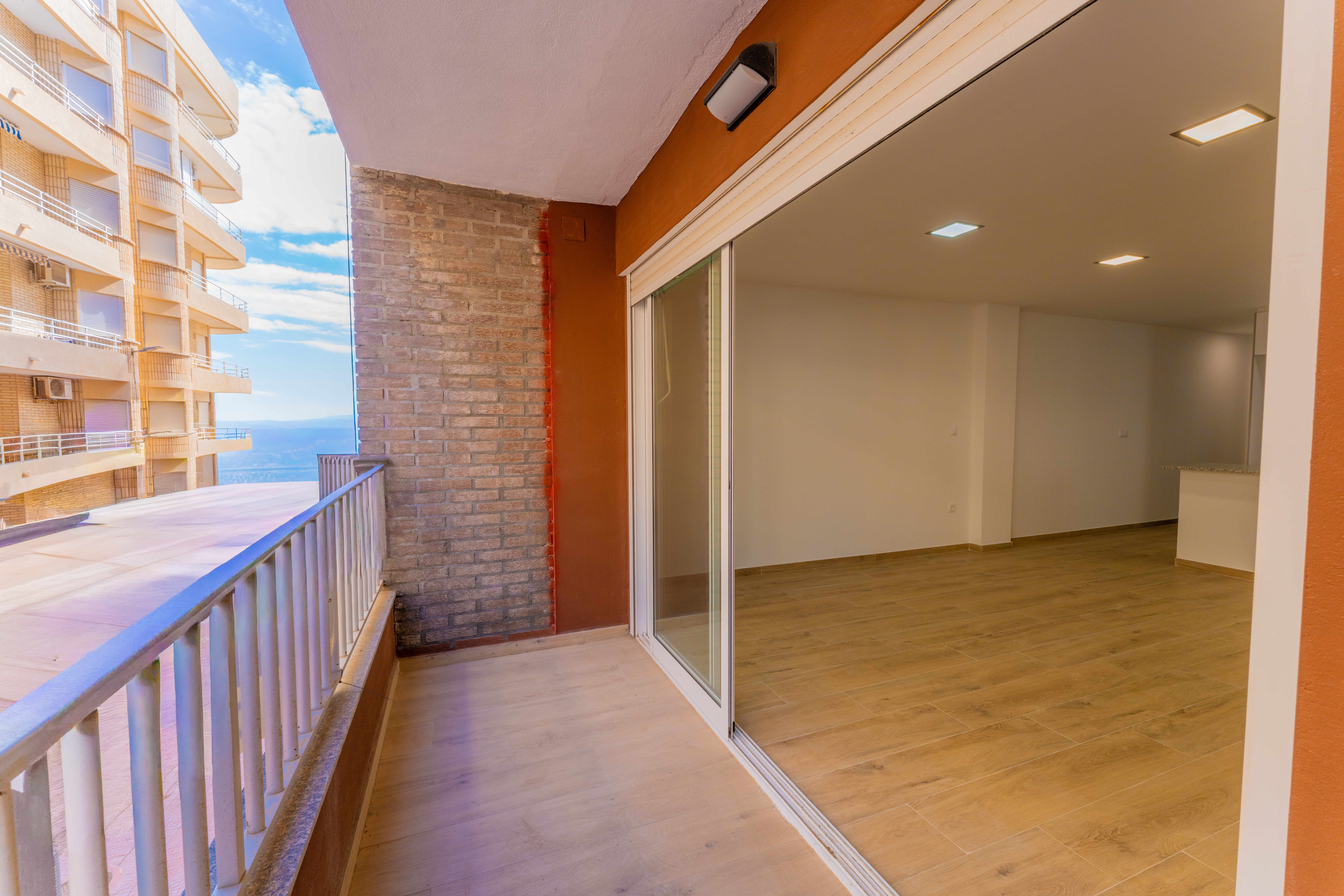 La propiedad ha sido renovada íntegramente , ofreciendo un diseño moderno y confortable. Cuenta con tres dormitorios , dos baños completos , un luminoso salón con cocina americana equipada y un balcón con vistas laterales al mar , perfecto para disfrutar del entorno mediterráneo.