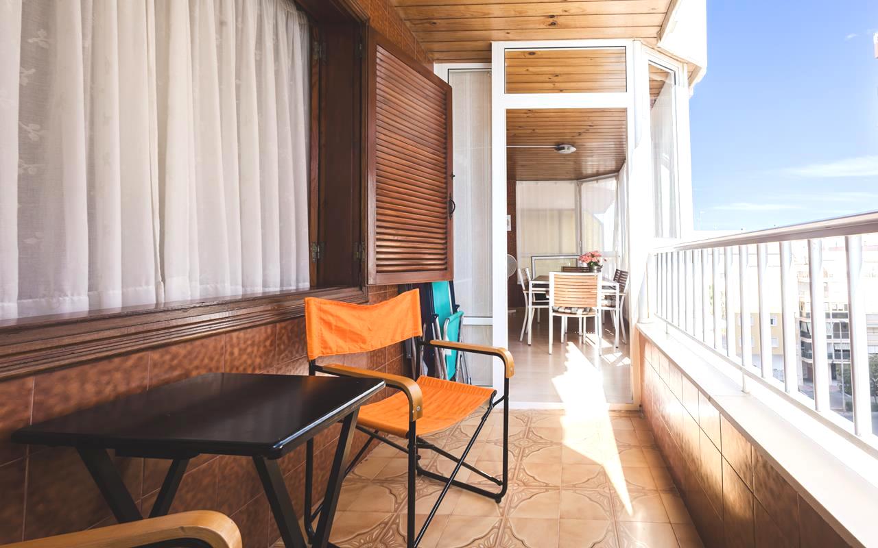 Apartamento de 3 dormitorios en primera línea de playa, en 5.ª planta, con acceso directo a la playa, piscina comunitaria, ascensor y terraza con vistas al mar.