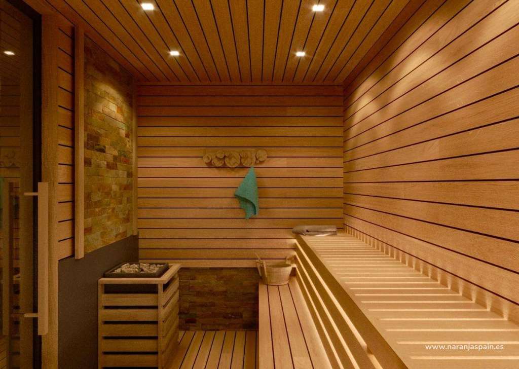 Piscina comunitaria y sauna de acabado, solarium en la azotea con barbacoa.