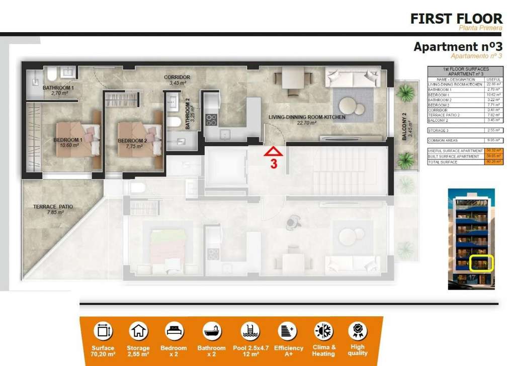 Torrevieja es una de las ciudades costeras más dinámicas y en crecimiento de la Costa Blanca, famosa por su clima, playas, salinas y vida cultural. Esta promoción es ideal tanto para residencia habitual, inversión o como segunda vivienda para vacaciones.