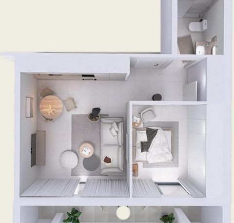 Este residencial dispone de 16 viviendas, de 1, 2 o 3 dormitorios y 1 y 2 baños, todas con terrazas desde 7m2 hasta 55m2, orientadas al Sur o al Oeste, con solarium comunitario, jacuzzi, zona chill out y sauna.