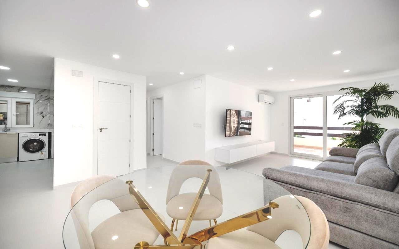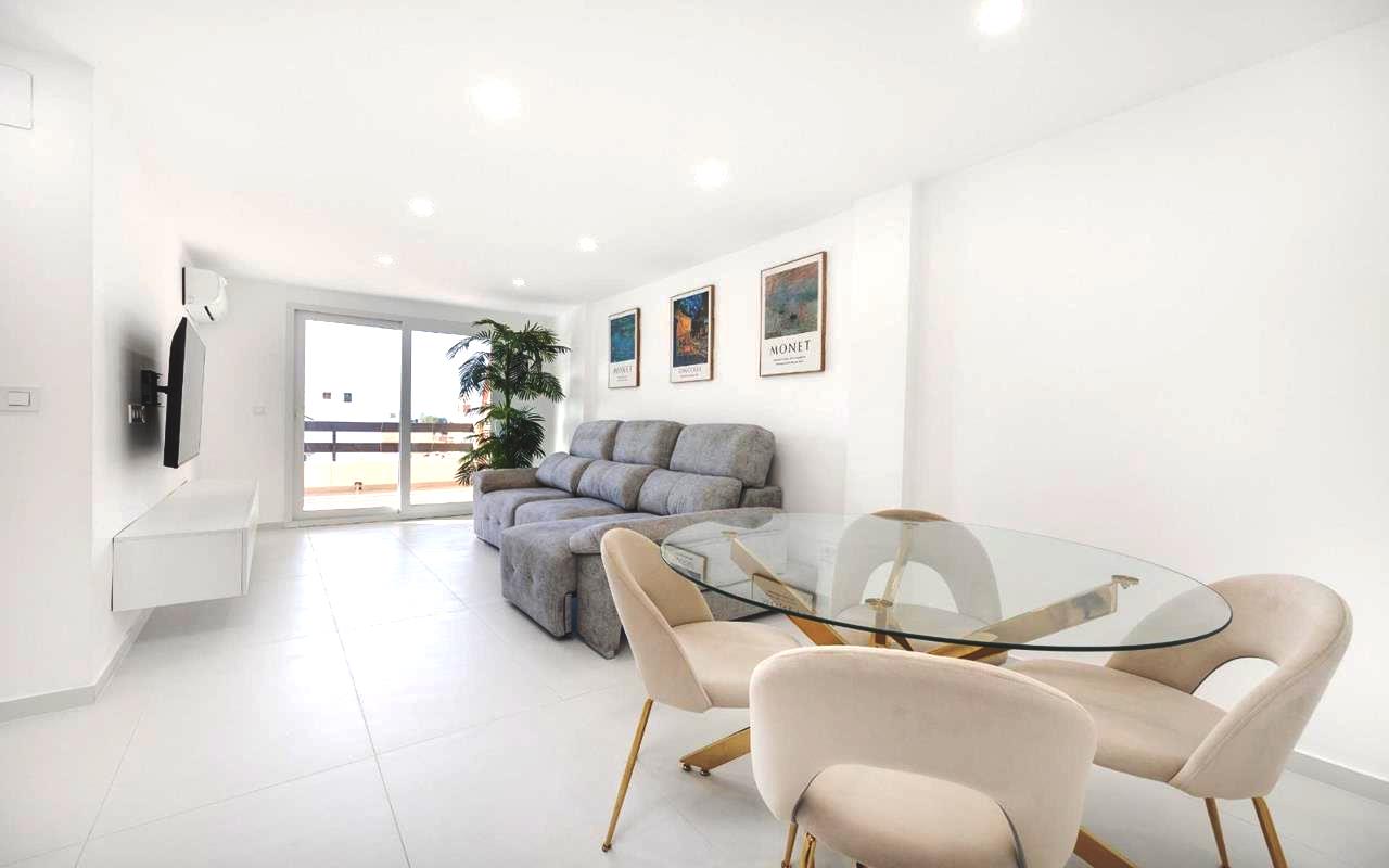 - White Villas in Spain presenta este apartamento reformado en primera línea de playa, situado en la 4ª planta de la playa de Naufragos. Con 102 m² construidos, dispone de 3 dormitorios, 2 baños, 30 m² de terraza, cocina totalmente equipada, ascensor y orientación oeste.