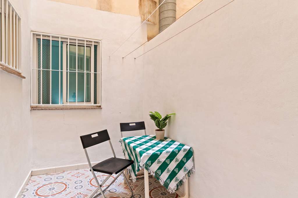 La cocina dispone de buen espacio de almacenamiento y acceso directo al lavadero y al patio privado. Una barra americana conecta la cocina con el salón, creando un ambiente social. Desde el salón se accede al segundo dormitorio y al balcón.