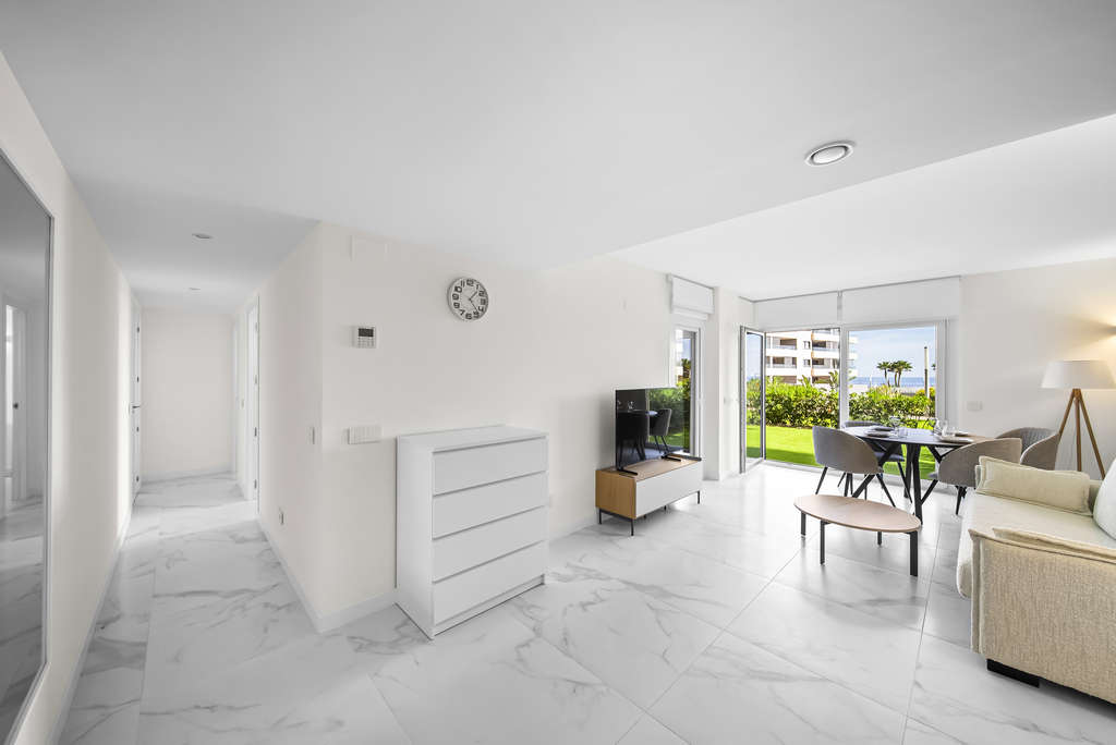 Apartamento en planta baja con jardín frente al mar en Punta Prima.
