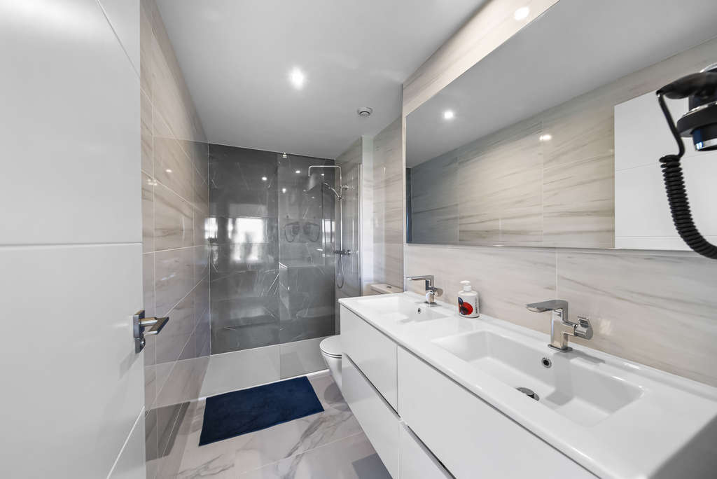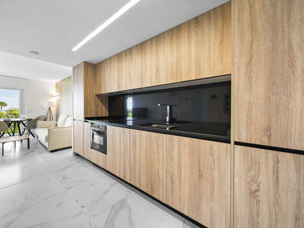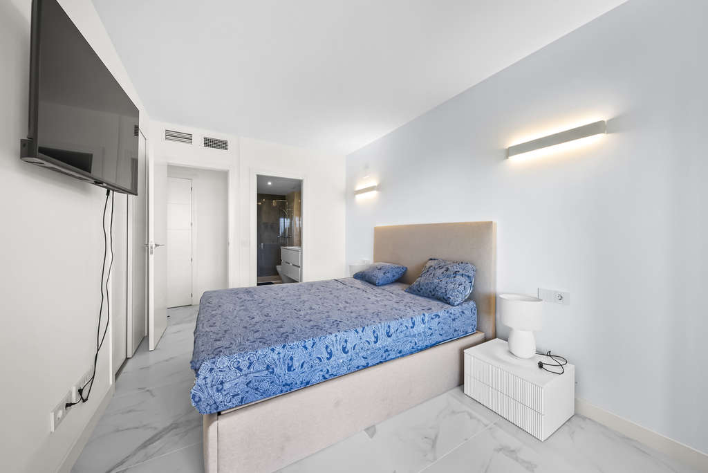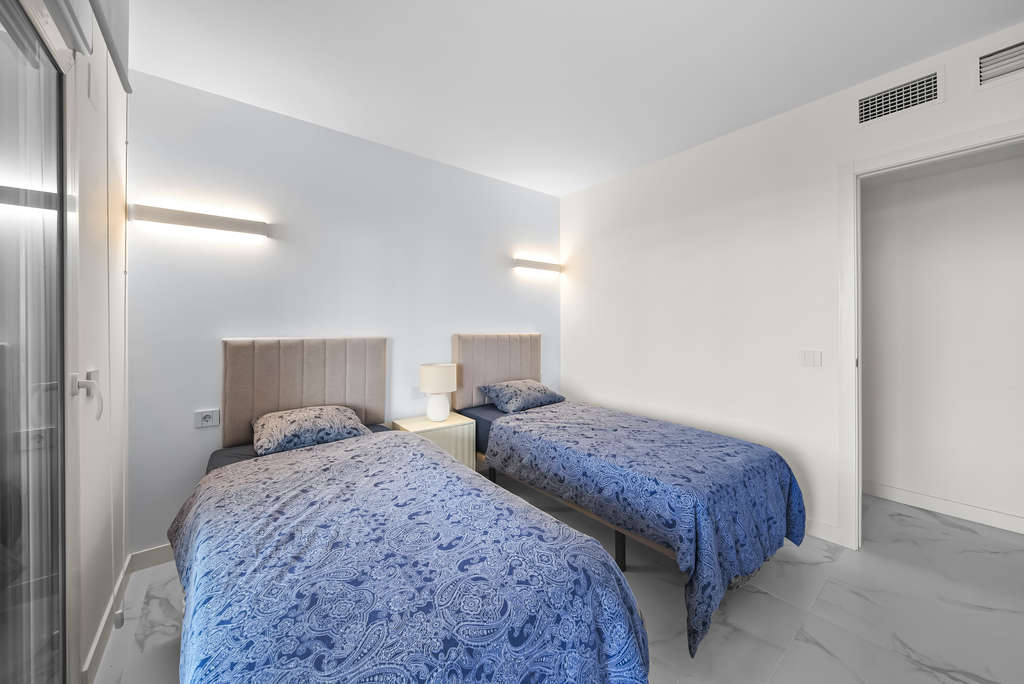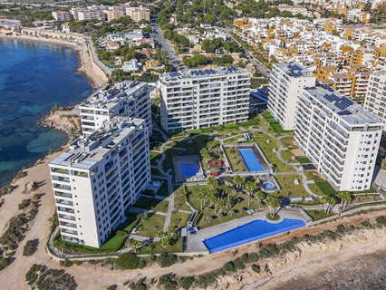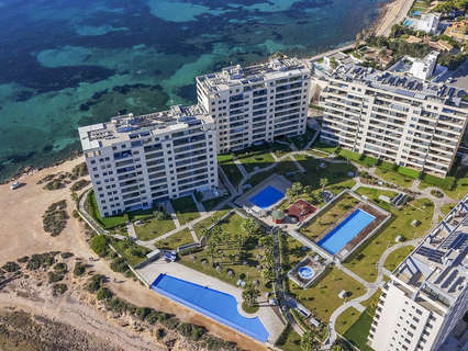 Apartamento de obra nueva en el exclusivo residencial Posidonia, en primera línea de mar en Punta Prima. Cuenta con 2 dormitorios, 2 baños y una terraza-jardín de 46 m² orientada al este. Dispone de 127 m² construidos, plaza de parking subterránea y trastero.